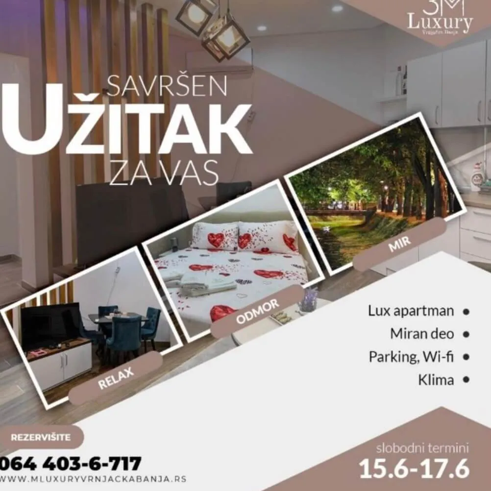 Apartman 3M LUX je novopremljen apartman koji se nalazi preko puta izvora Jezero, odmah do restorana Kruna. Gostima je na raspolaganju ukusno sređeno mini dvorište sa baštanskim stolicama, dnevni boravak sa kuhinjom, spavaća soba i kupatilo. Opremljen je kablovskom televizijom, WiFI-om i klima uređajem.