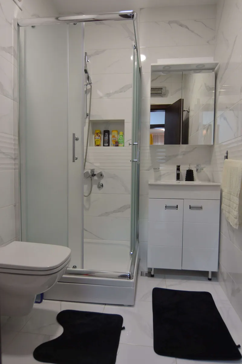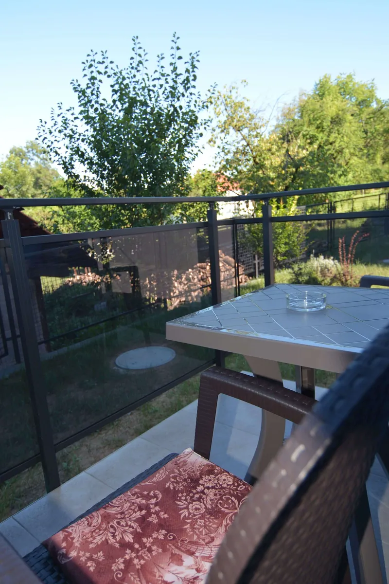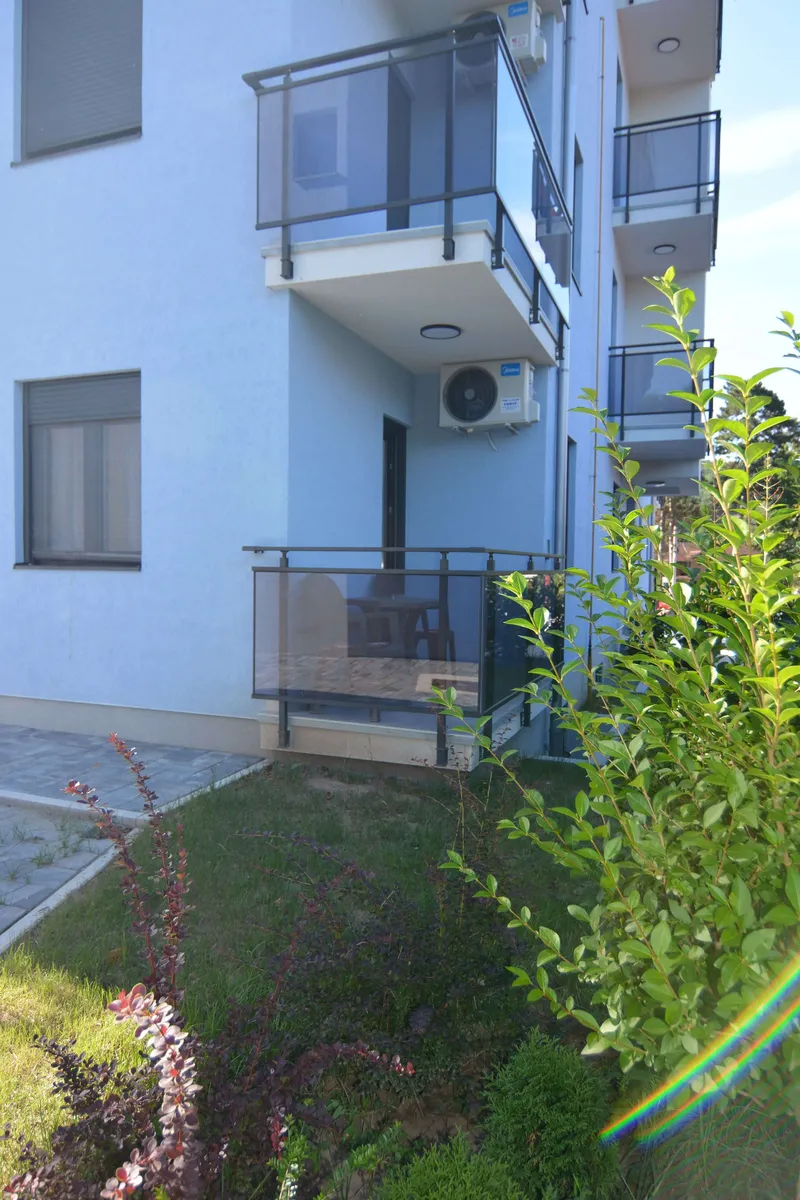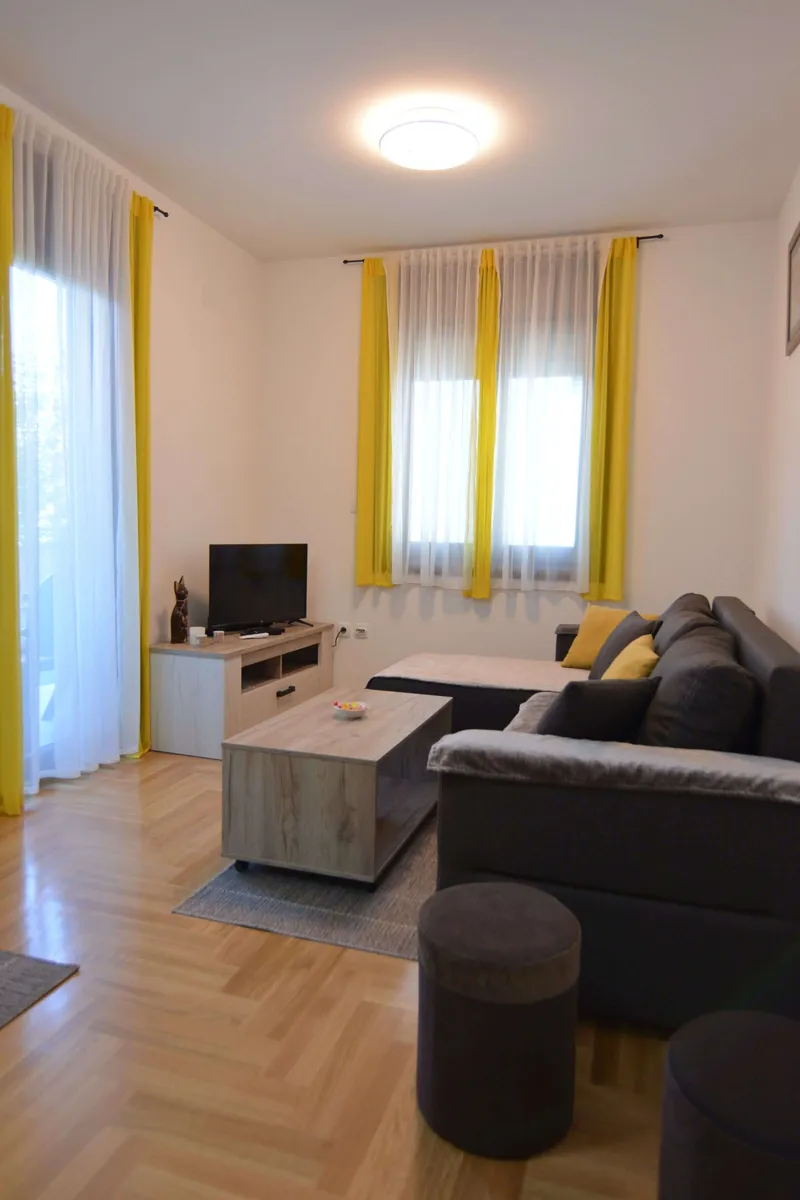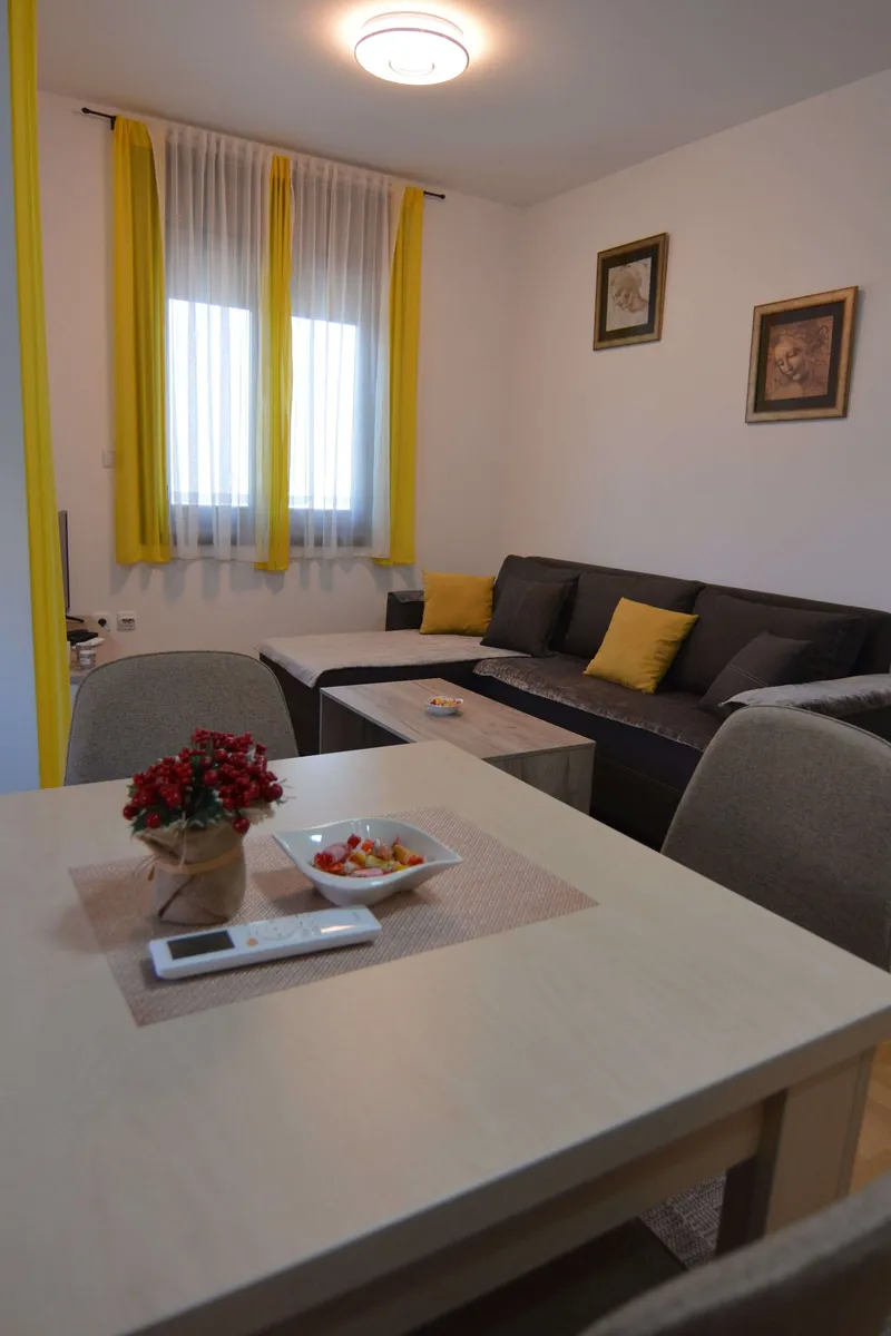 Poseduje dnevni boravak sa kuhinjom, odvojenu spavaću sobu (francuski ležaj), kupatilo, terasu i hodnik. Namenjen je za boravak 2 odrasle osobe i jednog deteta. Gostima je na raspolaganju WiFi, klima, kablovska.