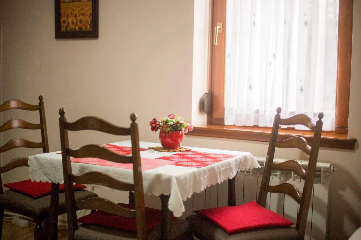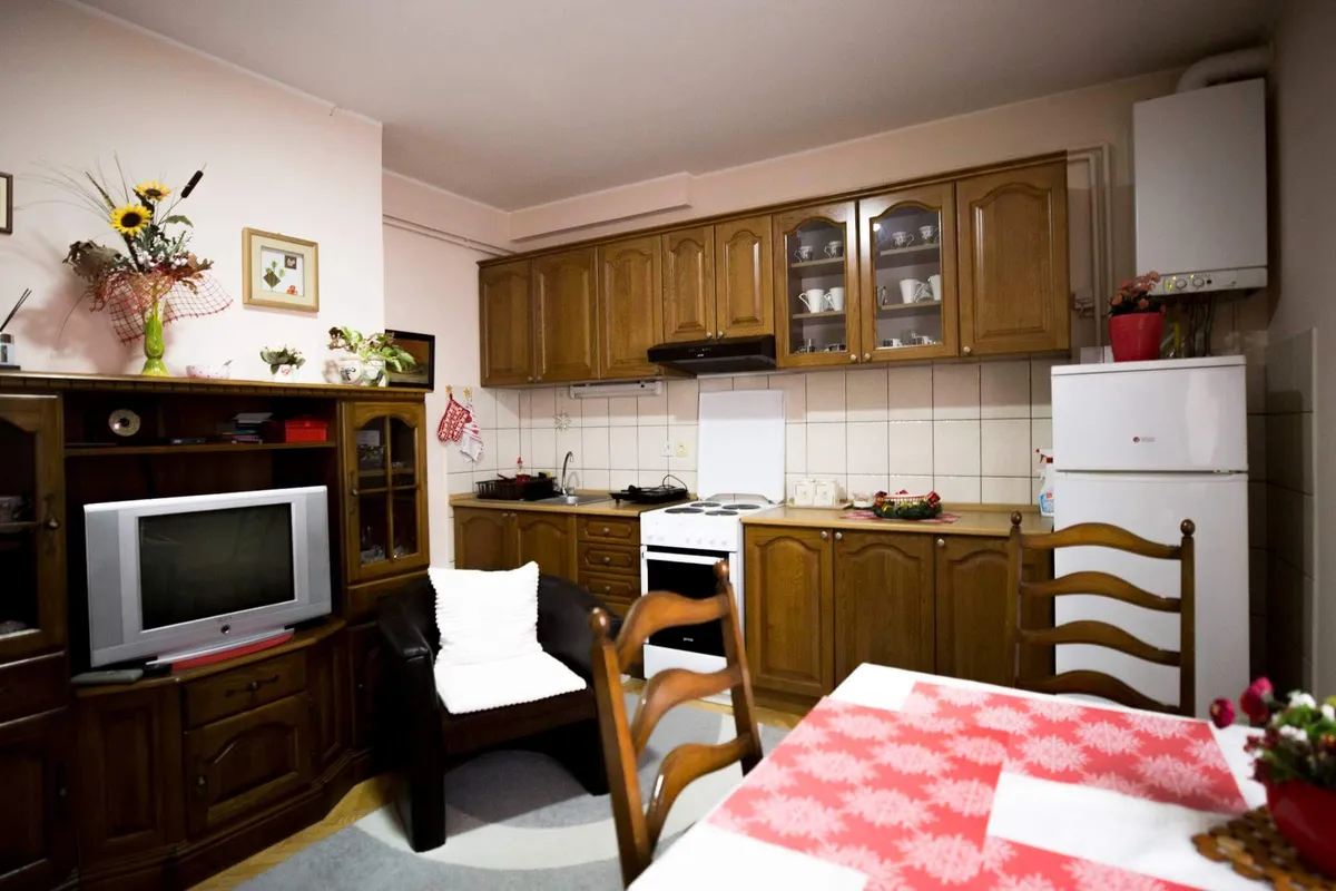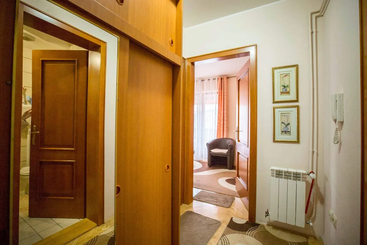 Apartman se sastoji iz dve prostorije: kuhinje sa trpezarijom u kojoj se nalazi ležaj na rasklapanje za dve osobe. Druga prostorija je dnevni boravak sa ležajem za dve osobe i pomoćnom foteljom na rasklapanje. Apartman ima TV sa kablovskom, wi-fi, opremljenu kuhinju sa friziderom i šporetom. Obezbeđena posteljina, peškiri, fen za kosu i pegla. Apartman se nalazi na prvom spratu, poseduje terasu i parking mesto.