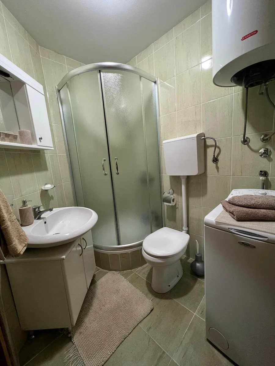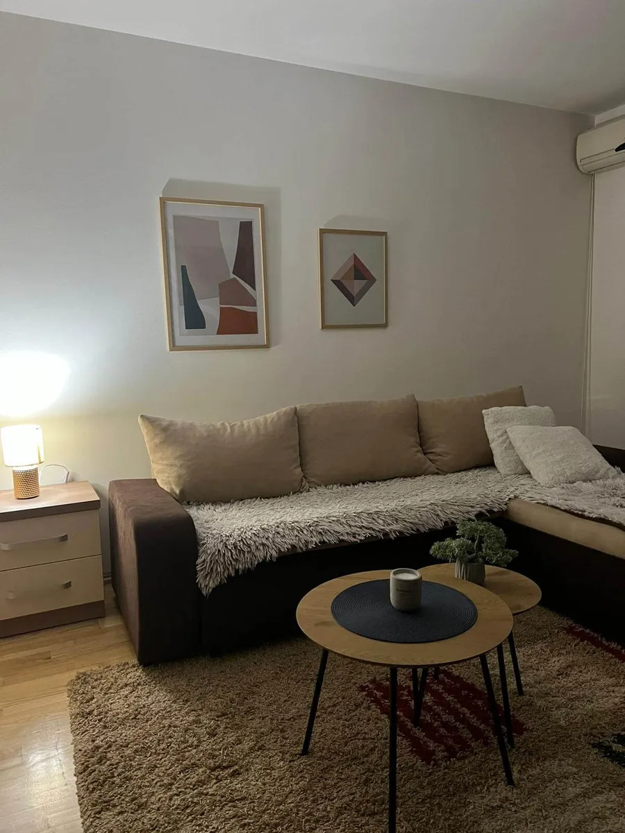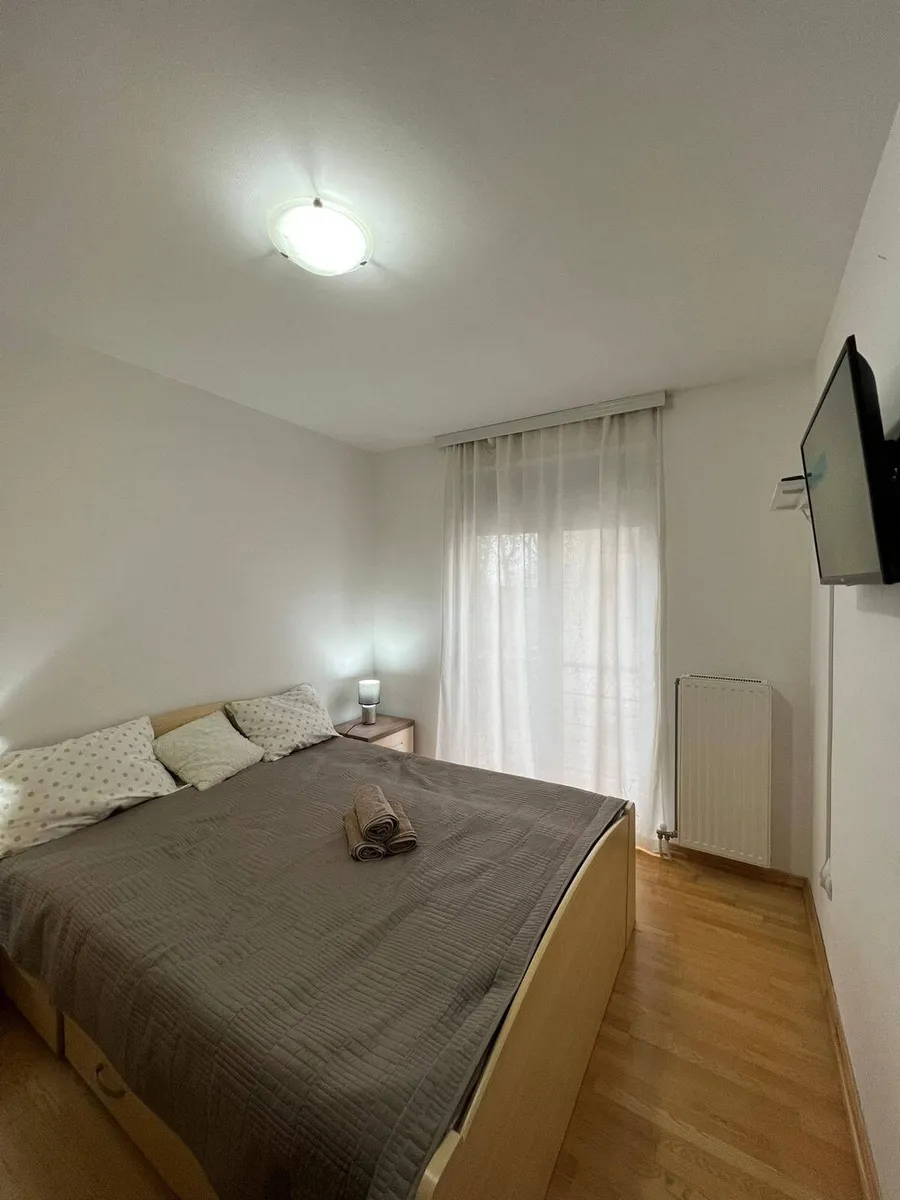 Raspolaže sa odvojenom spavaćom sobom (francuski ležaj), dnevnim boravkom (ugaona garnitra na razvlačenje), odvojenom kuhinjom i trpezarijom, terasom, hodnikom i kupatilom. Namenjen je za boravak do 4 osobe. Gostima su na raspolaganju dva televizora, kablovska, Internet i klima.