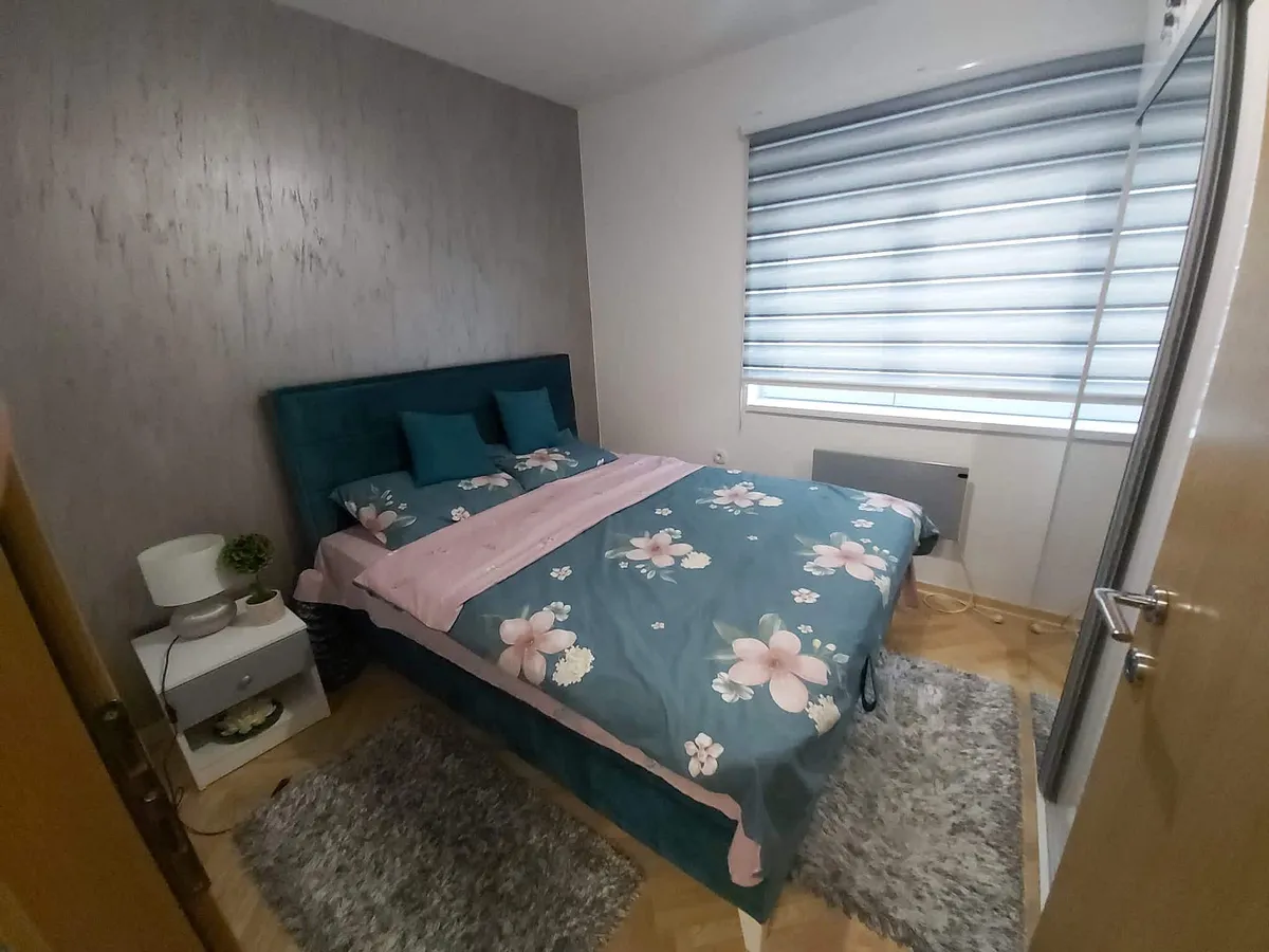 Apartman je površine 40m2, poseduje odvojenu spavaću sobu, dnevni boravak i kompletno opremljenu kuhinju, kao i veliku terasu sa udobnom garniturom za sedenje. Opremljen je klima uređajem, kablovskom televizijom, kao i internetom velike brzine bez ograničenja količine podatka. Uz apartman se izdaje i podzemna garaža. Apartman može da ugosti najviše 4 osobe. Kućni ljubimci nisu dozvoljeni. Za vreme boravka u apatmanu dobijate za svaku osobu veliki i mali peškir, posteljinu, fen, peglu...