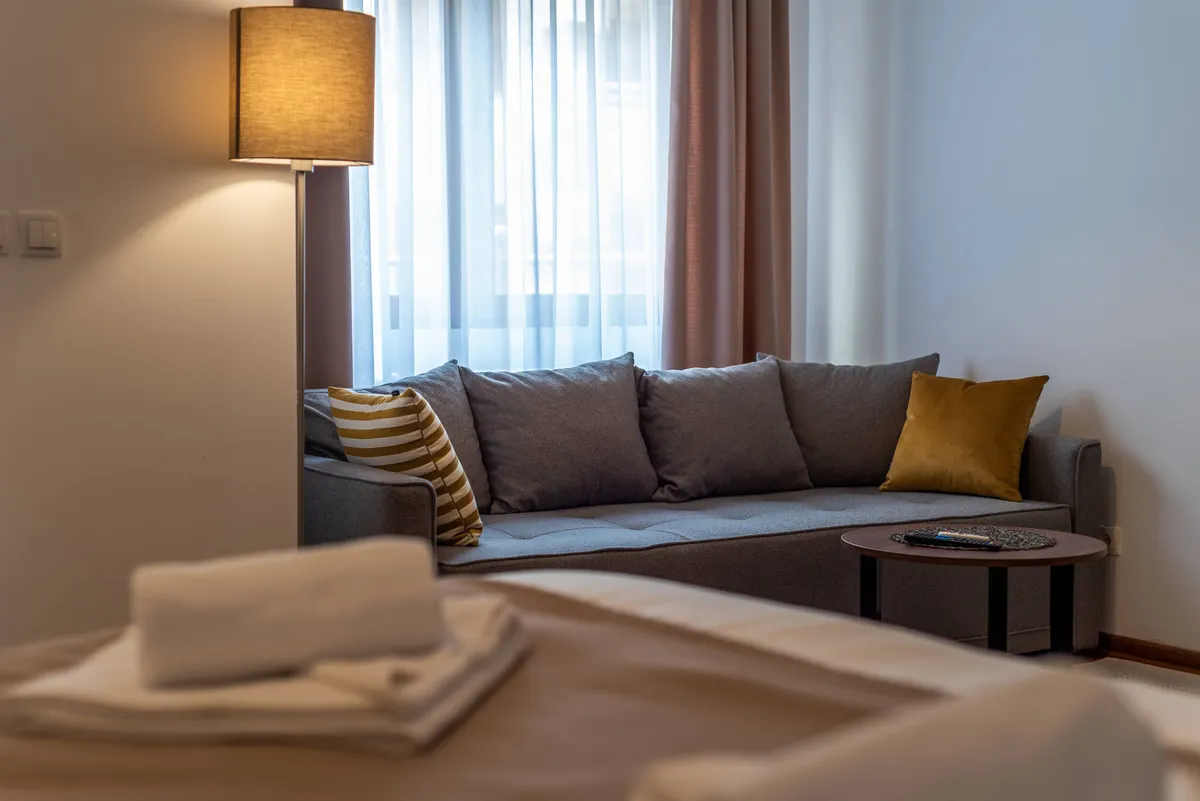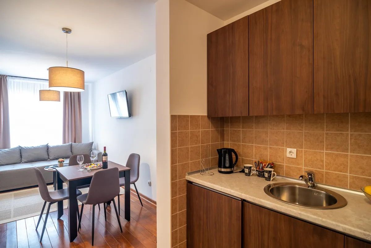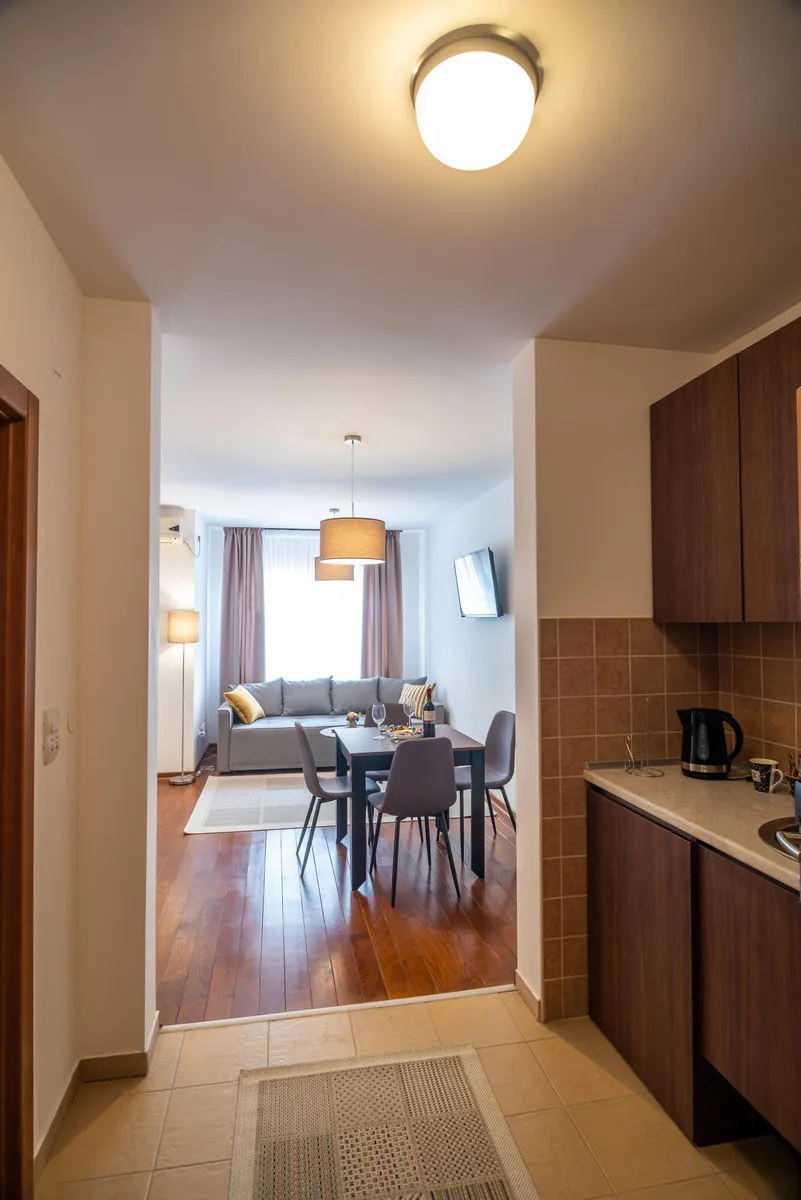 Opremljen je smart televizorom sa kablovskim kanalima i besplatnim Wi-Fi internetom i klimom.