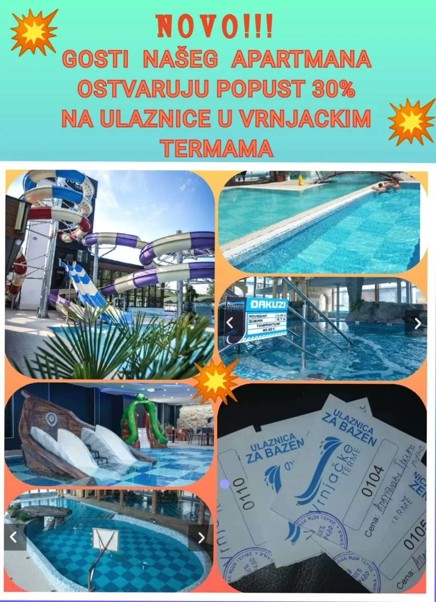 Gosti našeg apartmana ostvaruju popust od 30 % na ulaznice u Vrnjačkim termama.