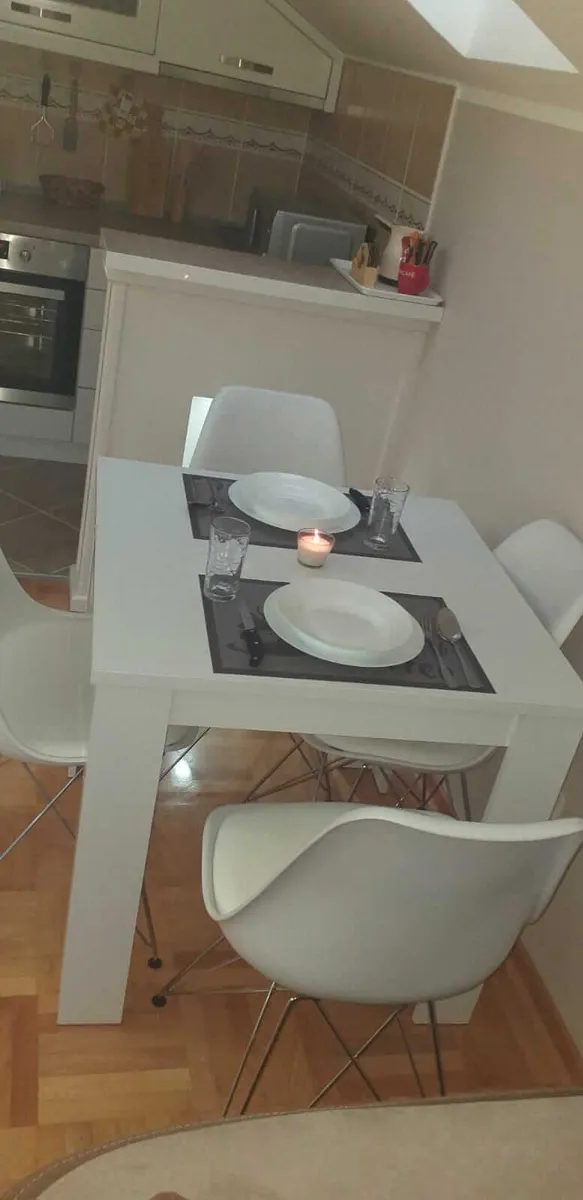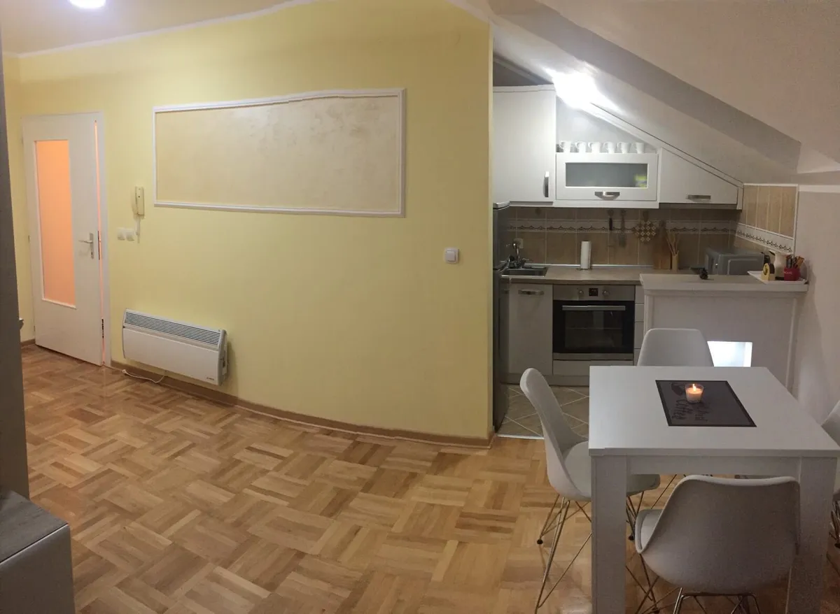 Namenjen je za boravak 2+2 osobe(francuski lezaj u spavacoj sobi i ugaona garnitura na razvlačenje u dnevnoj sobi)