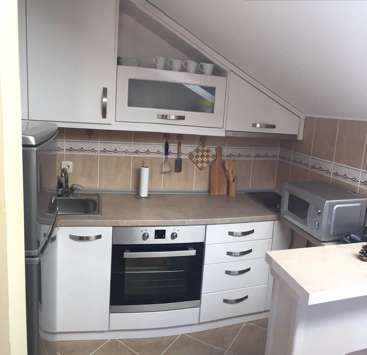 Poseduje dnevni boravak sa kompletnom opremljenom kuhinjom, predsoblje, odvojenu spavacu sobu, kupatilo i terasu.