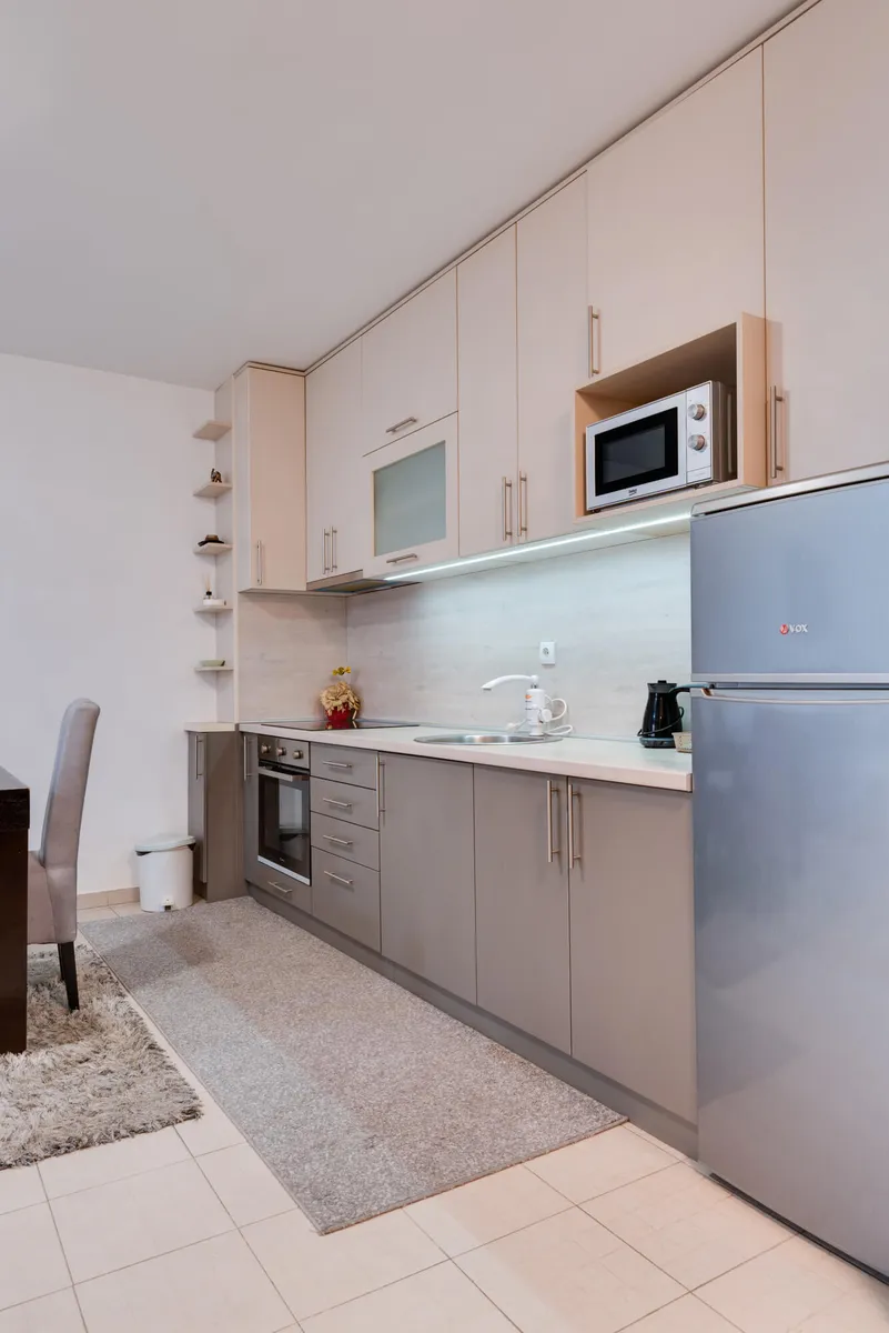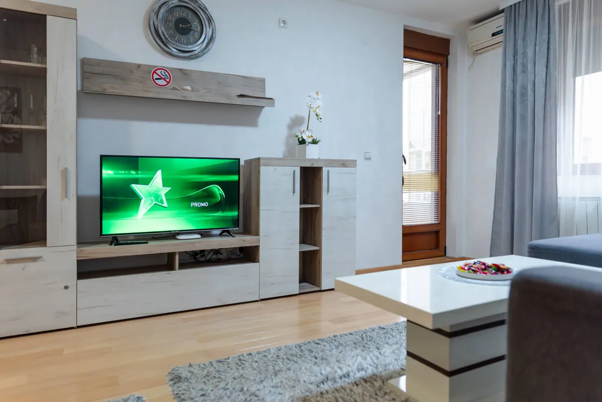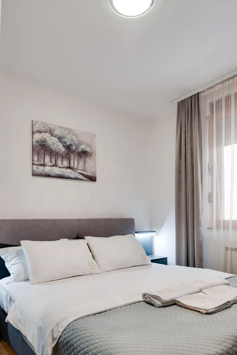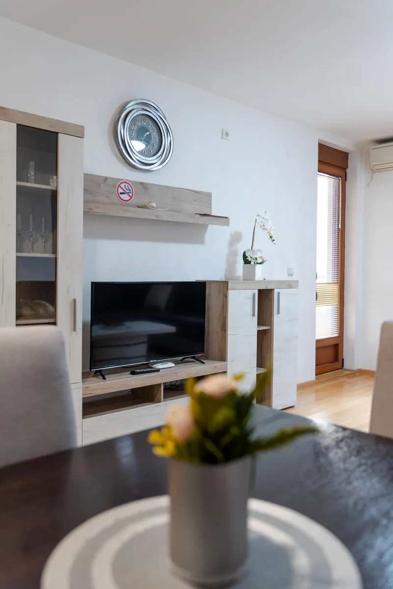 Apartman je idealan za boravak do četiri odrasle osobe. Sastoji se od odvojene spavaće sobe, prostranog dnevnog boravka sa kuhinjom, kupatila i terase. Gostima su obezbeđeni besplatan Wi-Fi, kablovska televizija, klima uređaj i parking prostor.