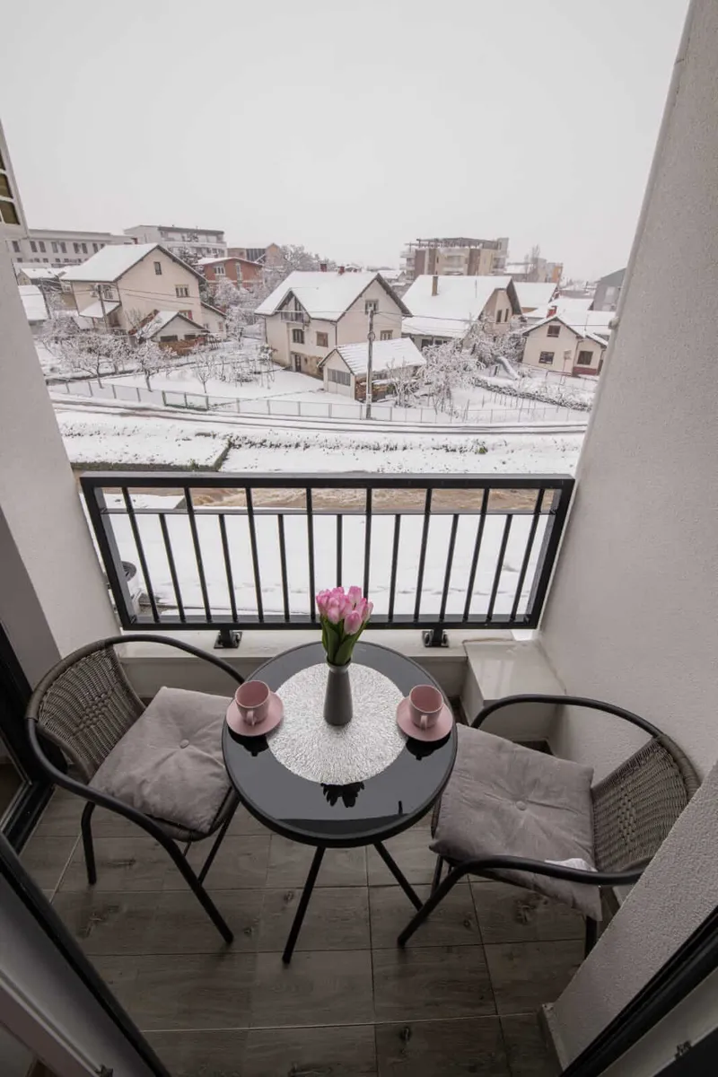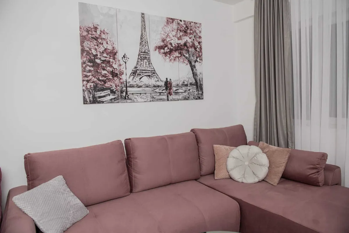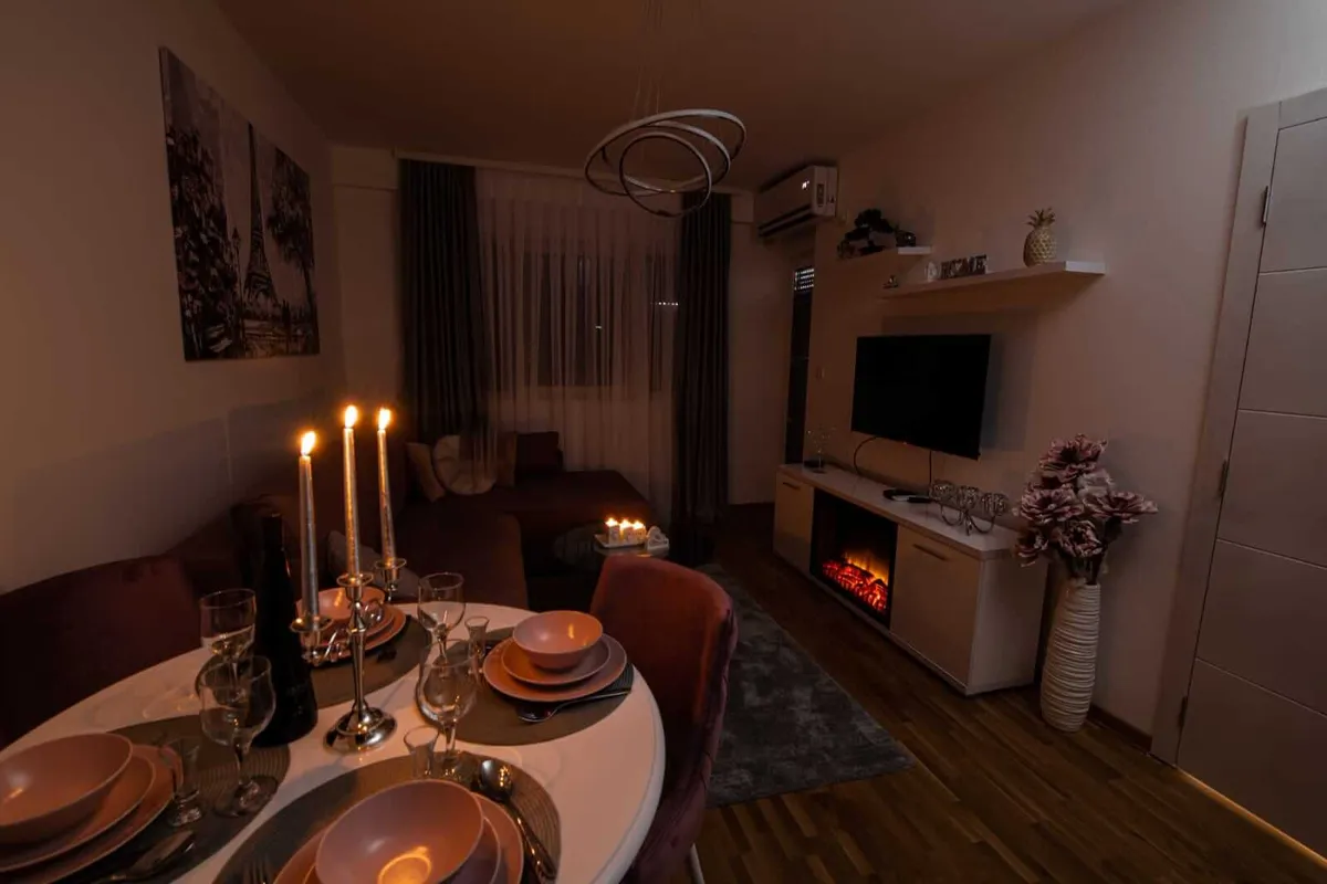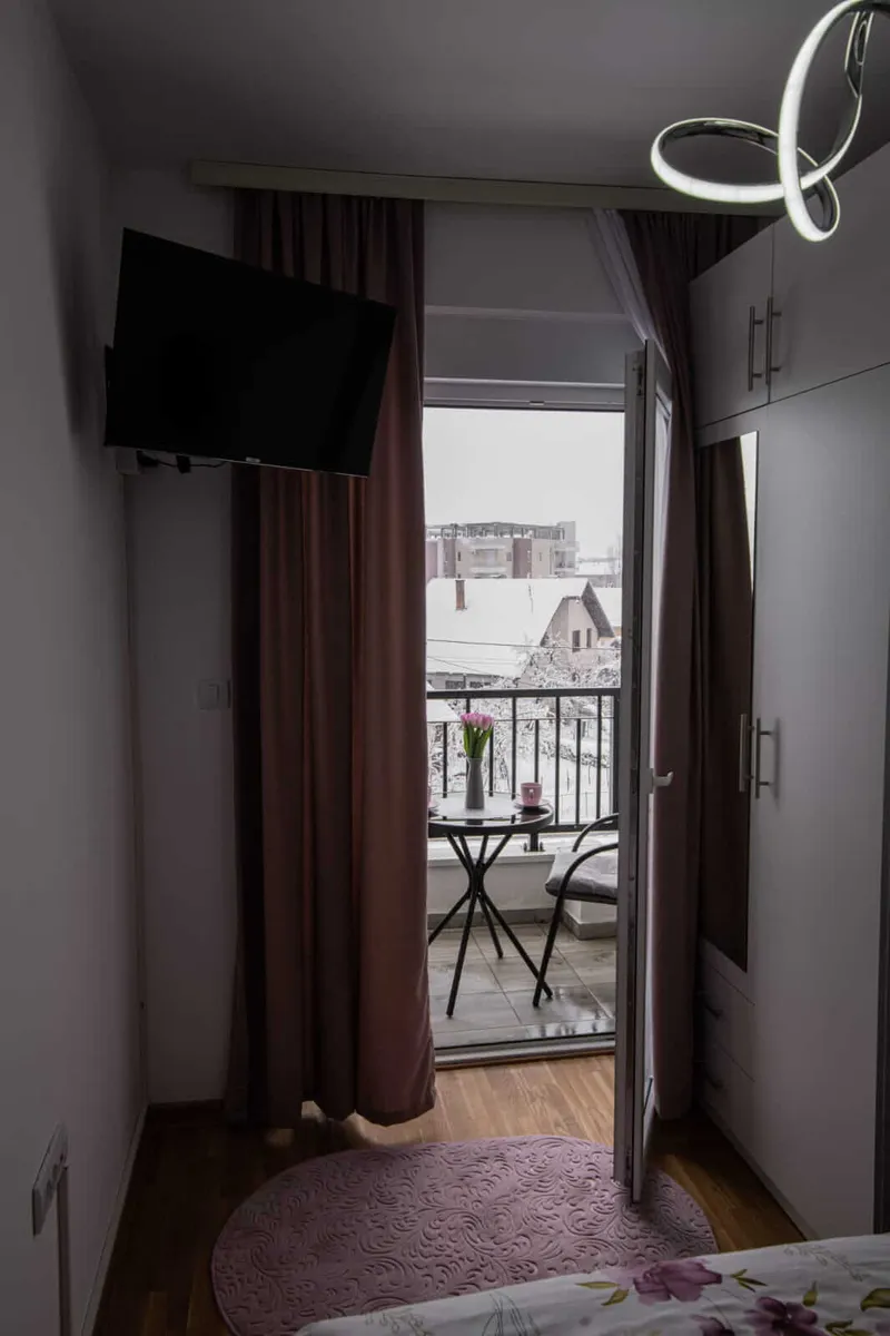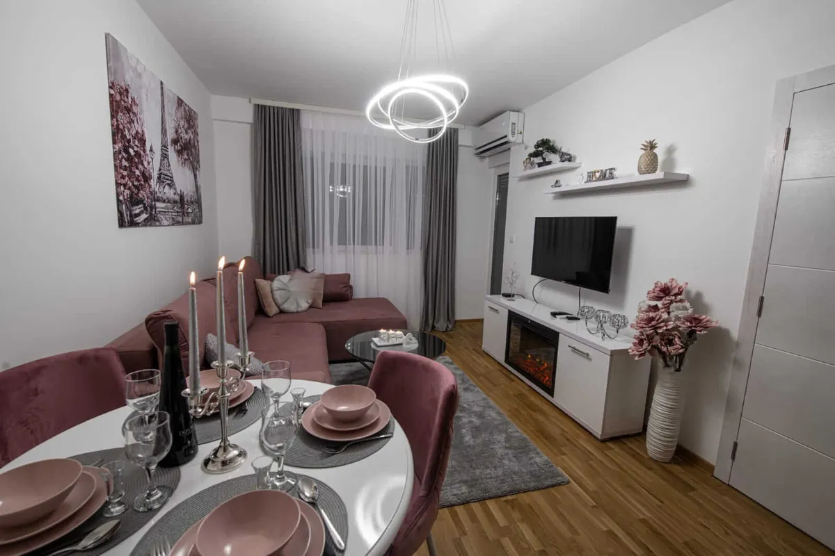 Apartman je udaljen 200 m od centra grada, a nedaleko od akva parka RAJ. Apartman poseduje odvojenu spavaću sobu, dnevni boravak sa opremljenom kuhinjom, kupatilo i terasu sa pogledom na reku.