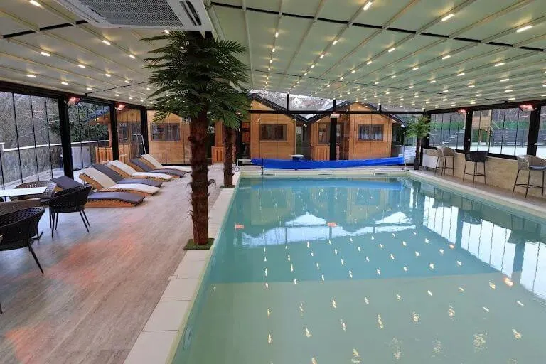 Gostima je na raspolaganju besplatno korišćenje bazena sa pokretnim krovom i kupanje tokom cele godine u sklopu dvorišta, restoran i dečije igralište. Cena zavisi od dužine boravka.