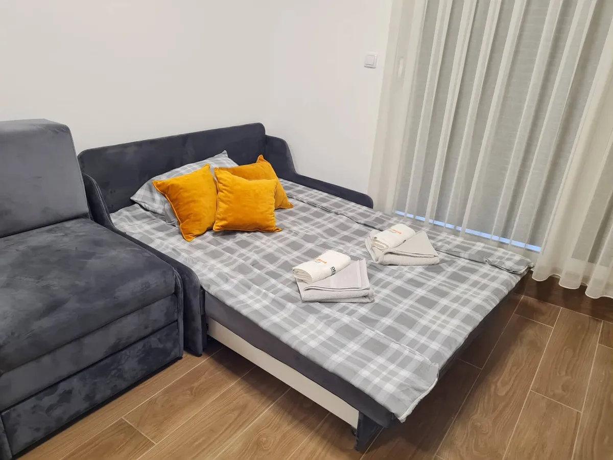 Smeštaj je tipa studo i opremljen je za boravak 2 + 1 osobe. Gostima je na raspolaganju kompletno opremljena kuhinja, kupatilo i velika terasa.