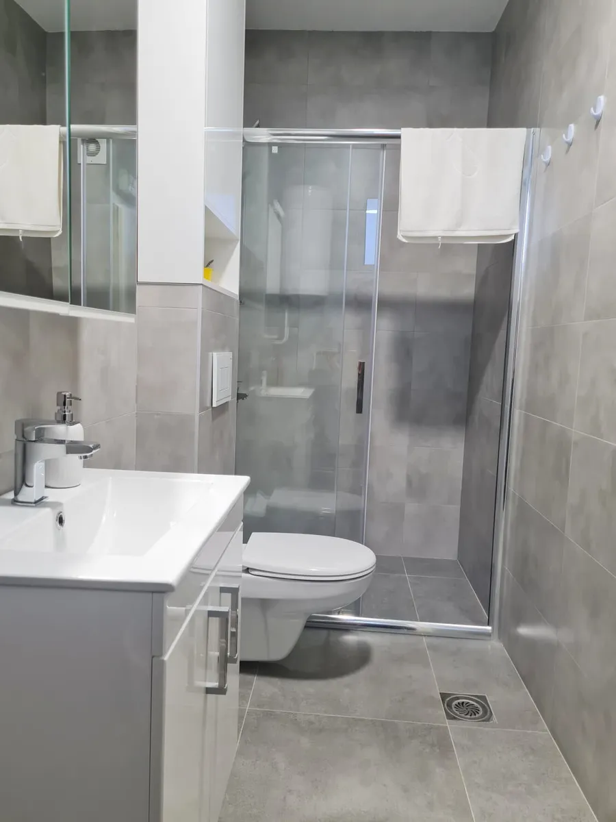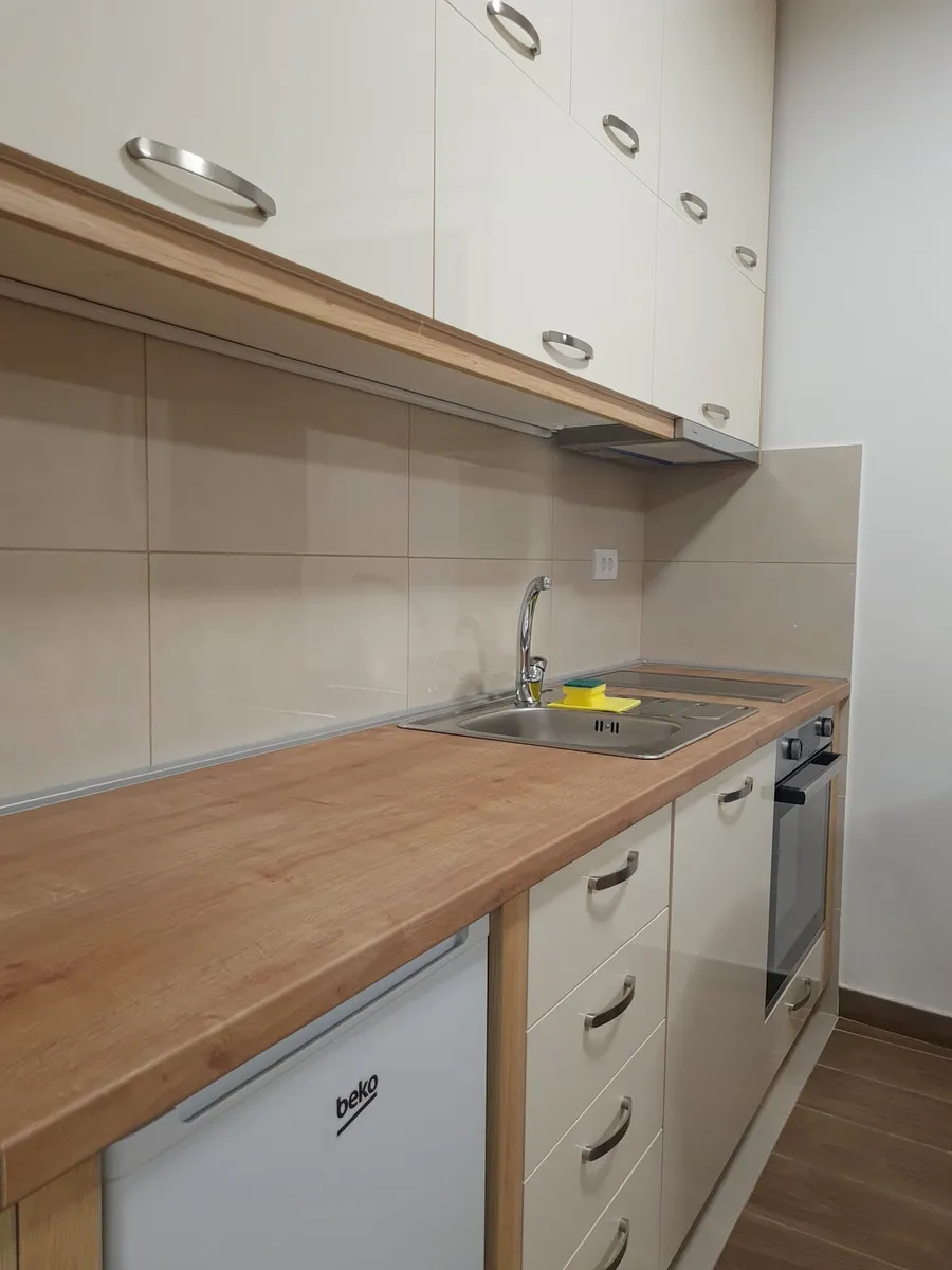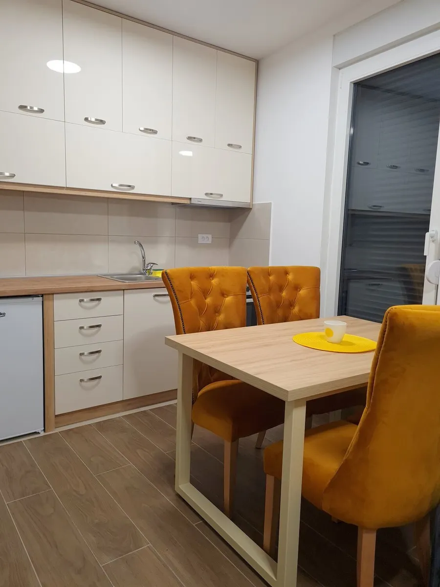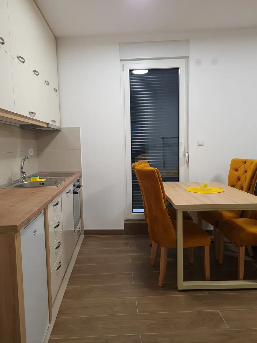 Opremljen je klimom, kablovskom i WIFi-om. Ispred zgrade je obezbeđen parking.