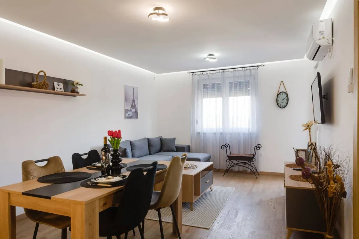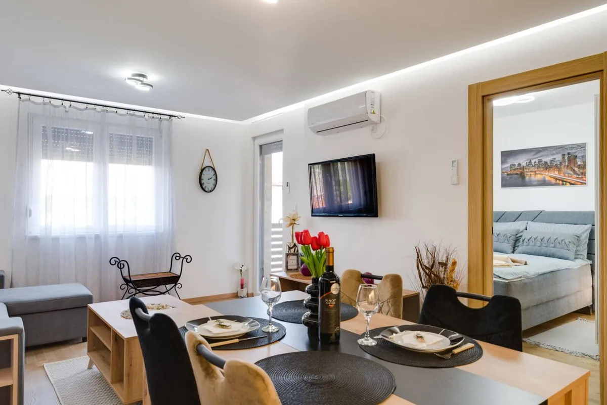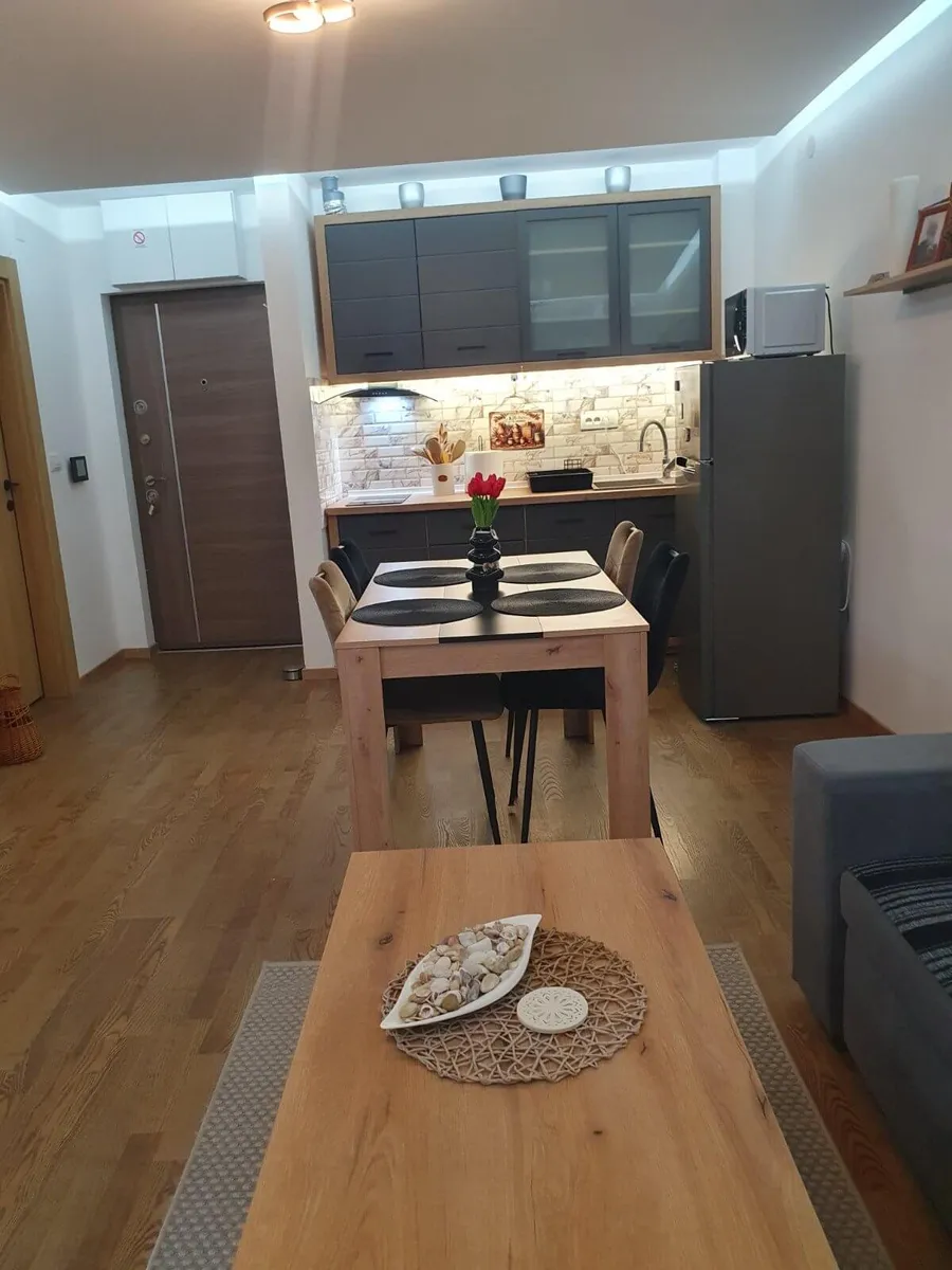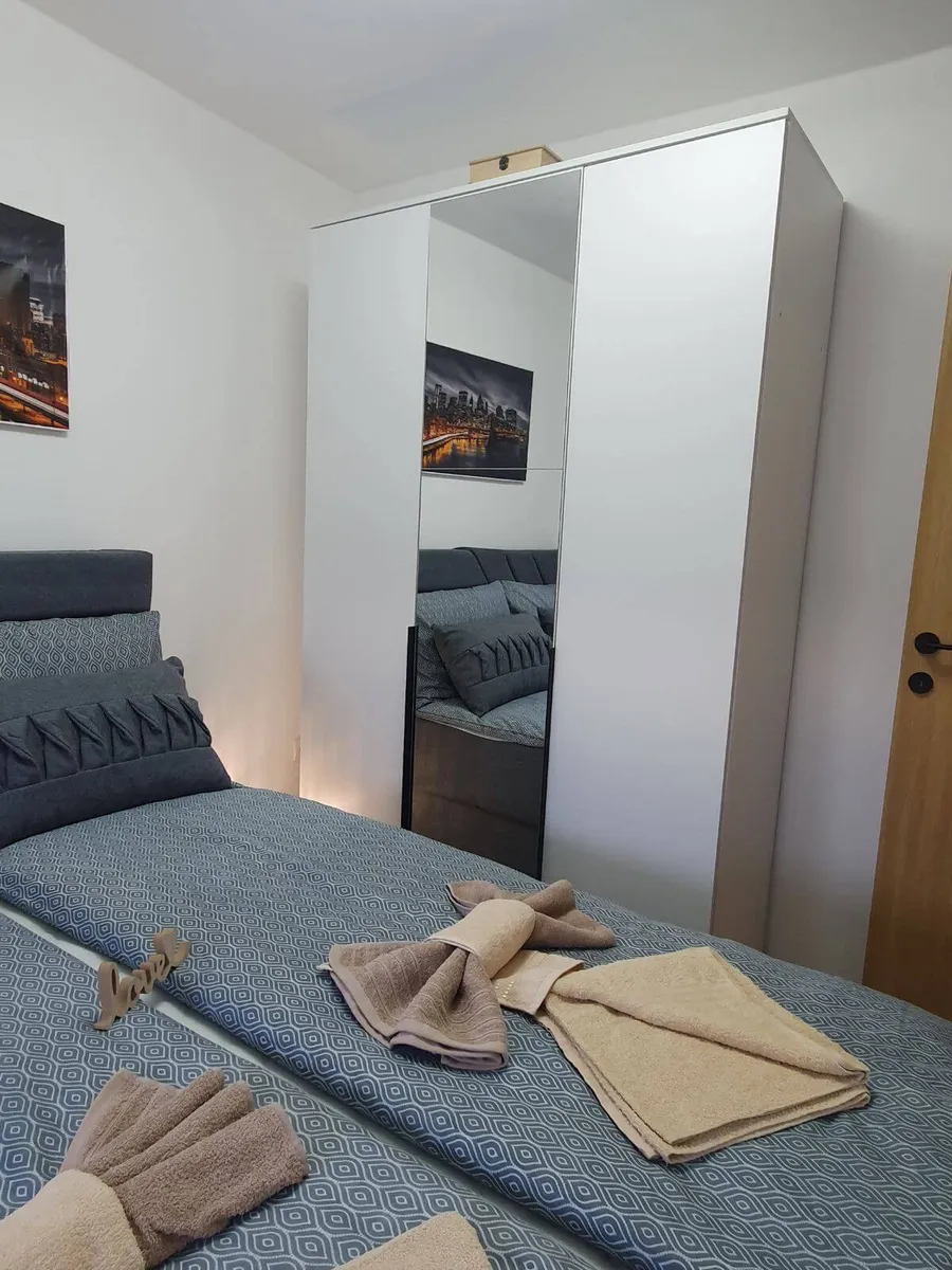 Poseduje odvojenu spavaću sobu (udoban francuski ležaj), dnevni boravak (ugaona garnitura na razvlačenje) sa kompletno opremljenom kuhinjom, kupatilo i terasu sa pogledom na panoramski točak. Pogodan je za boravak 2 + 2 osobe.