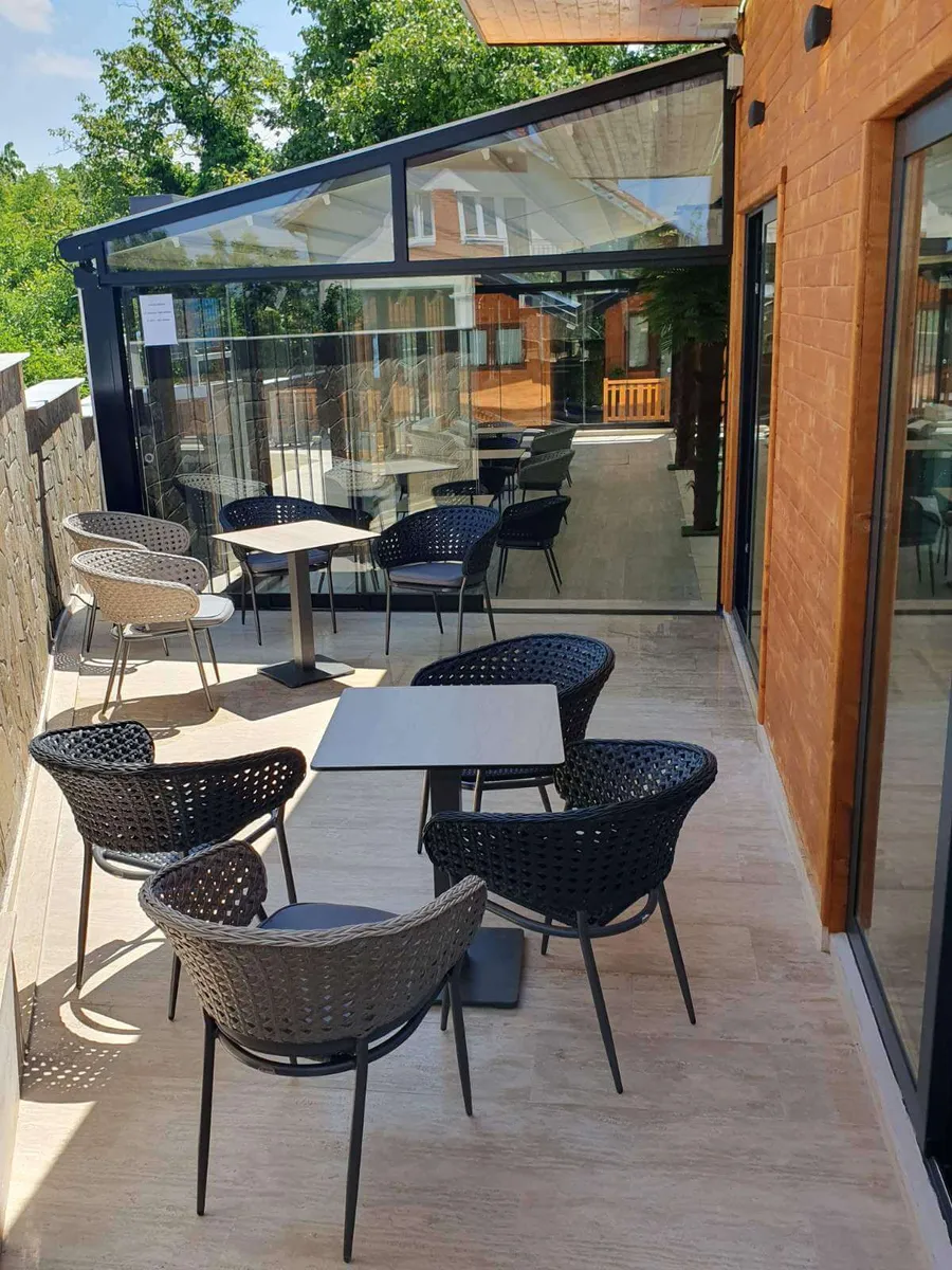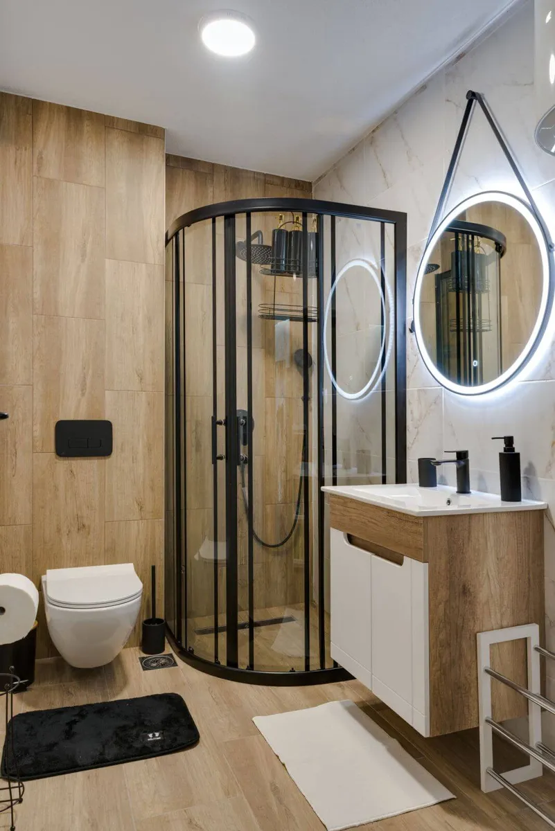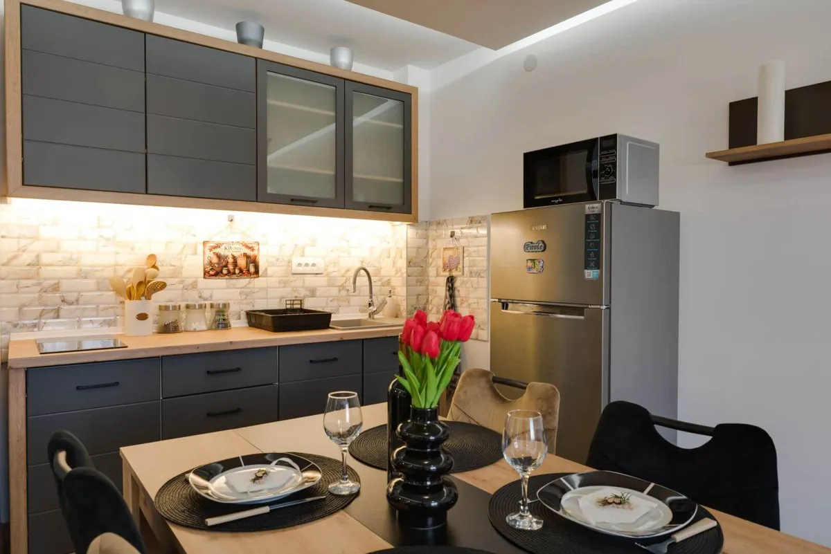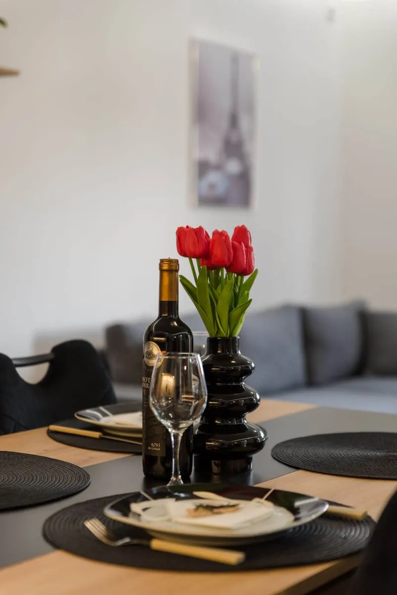 Poseduje odvojenu spavaću sobu (udoban francuski ležaj), dnevni boravak (ugaona garnitura na razvlačenje) sa kompletno opremljenom kuhinjom, kupatilo i terasu sa pogledom na panoramski točak. Pogodan je za boravak 2 + 2 osobe.