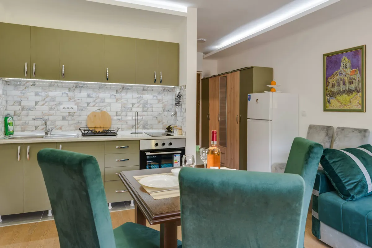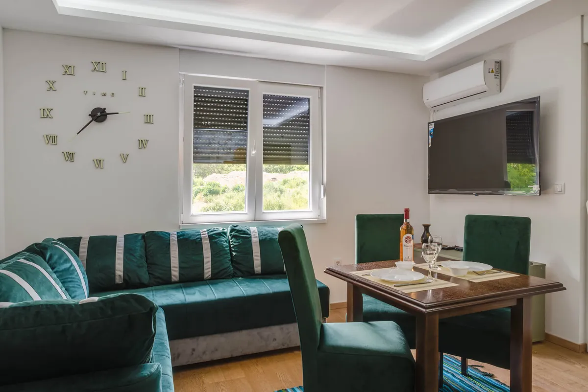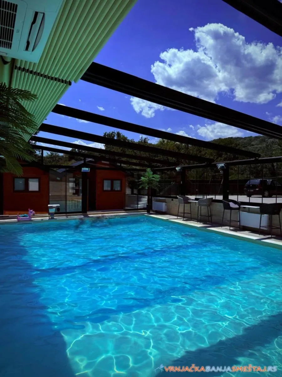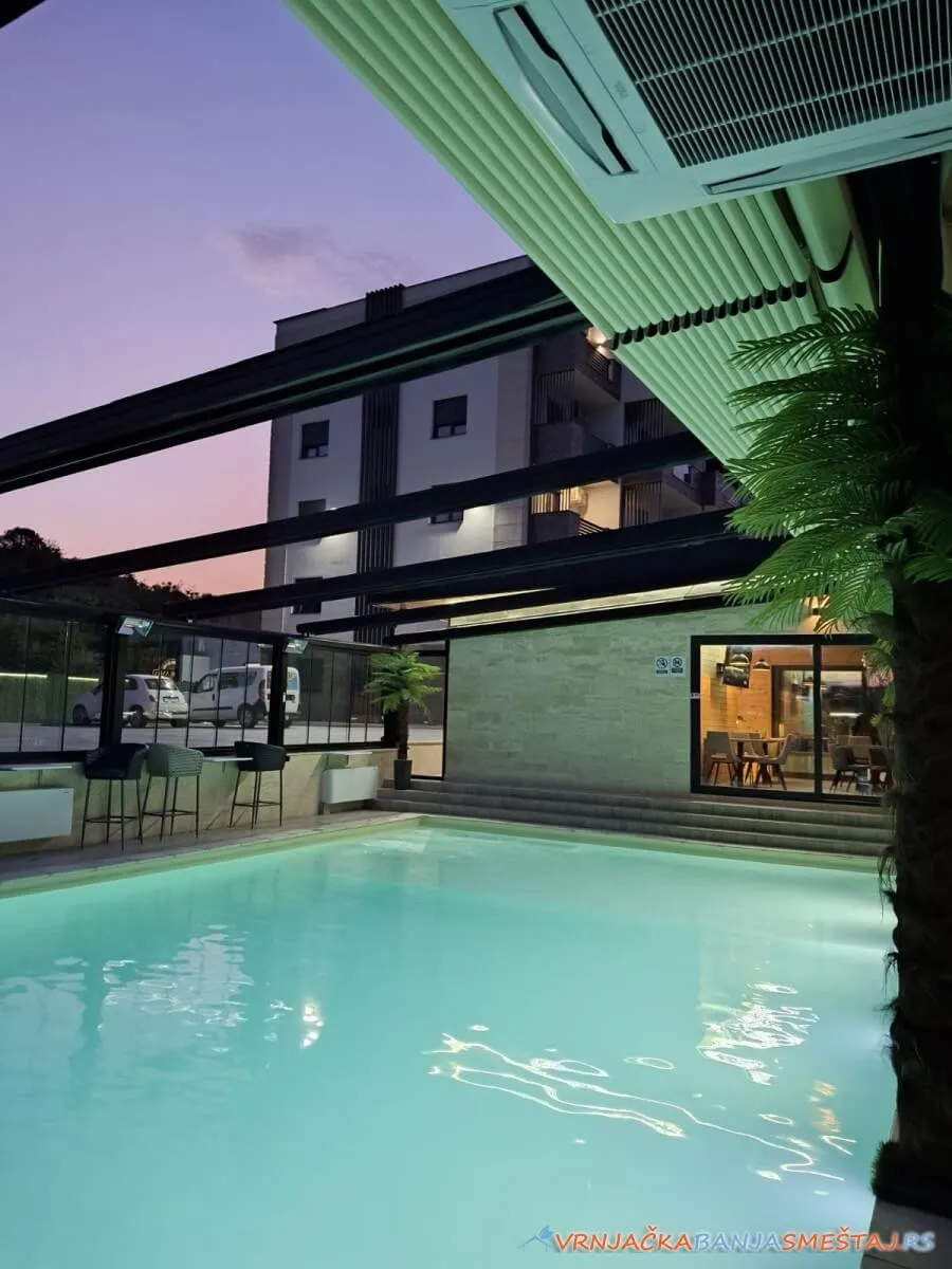 Ulazite u moderan apartman, puštate omiljeni film na 58-inčnom televizoru kao u bioskopu, klima vas fino greje ili hladi po potrebi, meka svetla led traka i lampe na daljinsko upotpunjuju atmosferu… A kad poželite da se opustite – bazen vas čeka, otvoren ili zatvoren – po vašoj želji!