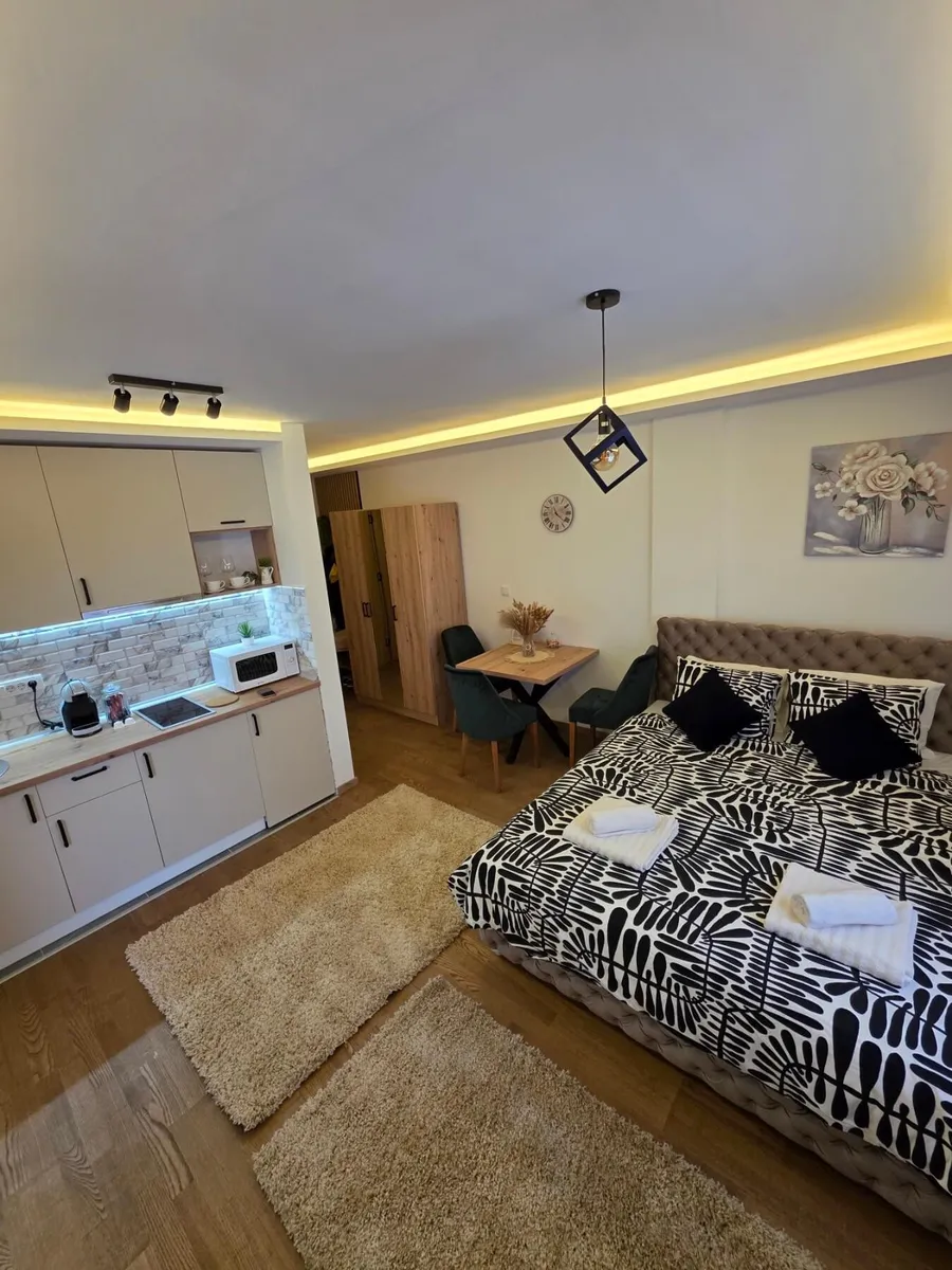 Doživite luksuz i potpuni mir u apartmanu Panoramic Nest. Dizajniran je kao prava oaza za beg od svakodnevice, sa fokusom na Vašu relaksaciju. Uživajte u prijatnom ambijentu.