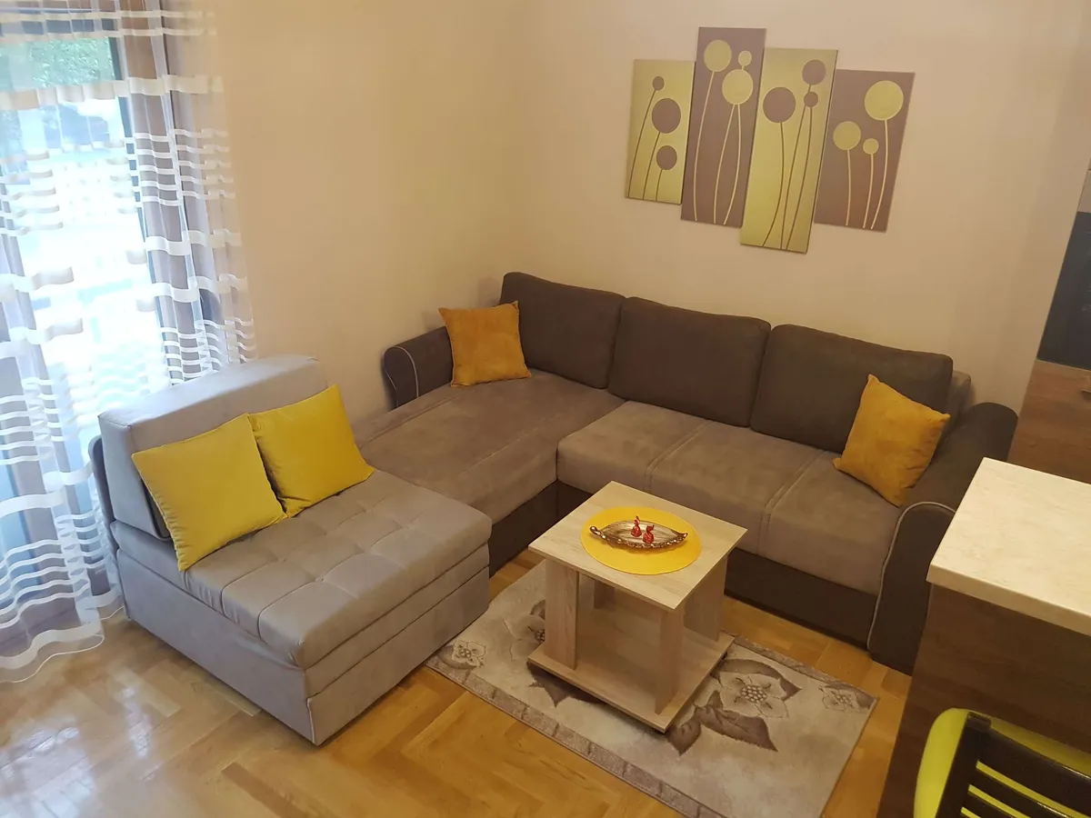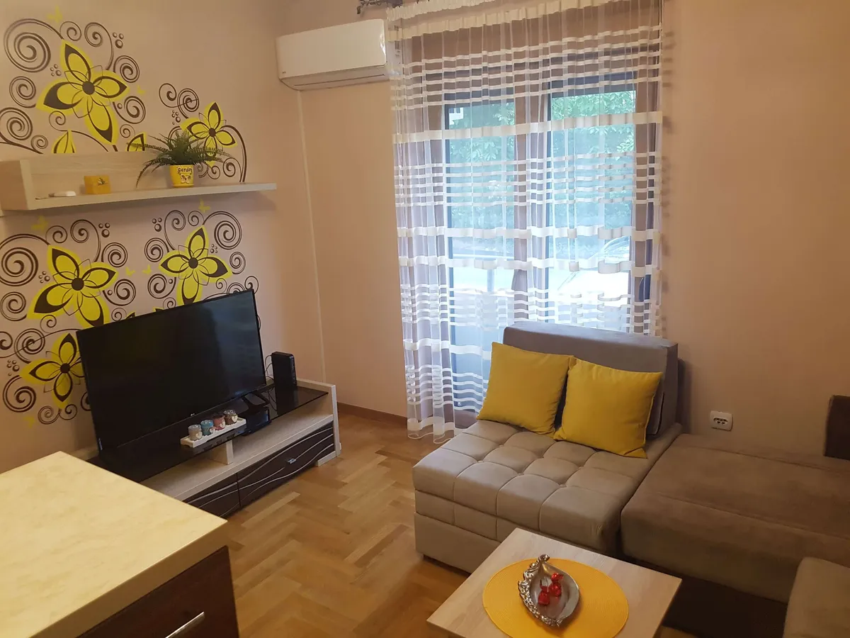 Apartman je studijskog tipa 25m2 predvidjen za troje odraslih ili dvoje odraslih i dete (obezbedjena fotelja na razvlacenje ili krevetac za dete) .U apartmanu ima TV sa kablovskom, wi-fi, opremljenu kuhinju sa friziderom,ugradnomrernom,ugradnom plocom. Obezbeđena posteljina,peškiri, fen za kosu i veš mašina. Apartman se nalazi u prizemlju novoizgradjene zgrade.Ispred zgrade je obezbedjen privatni parking samo za goste apartmana.