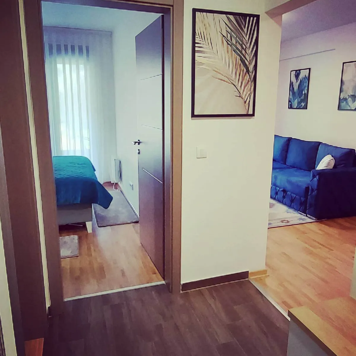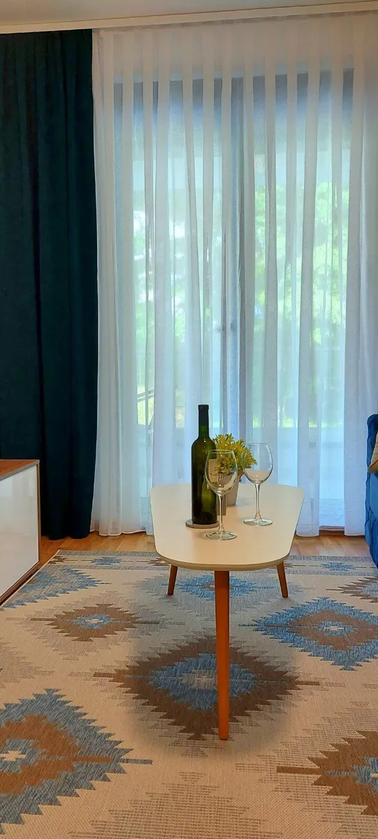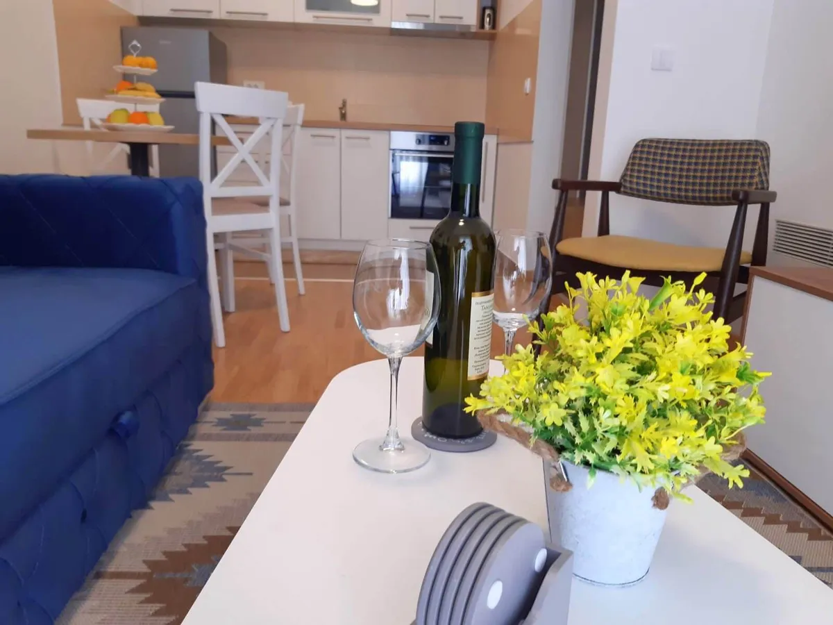 Apartman je potpuno opremljen za Vas idealan boravak u Vrnjackoj Banji. Poseduje odvojenu spavacu sobu sa izlazom na terasu, potpuno opremljenu kuhinju, kupatilo sa peskirima i fenom za kosu, klimu, kablovsku televiziju, WIFI internet i parking prostor.