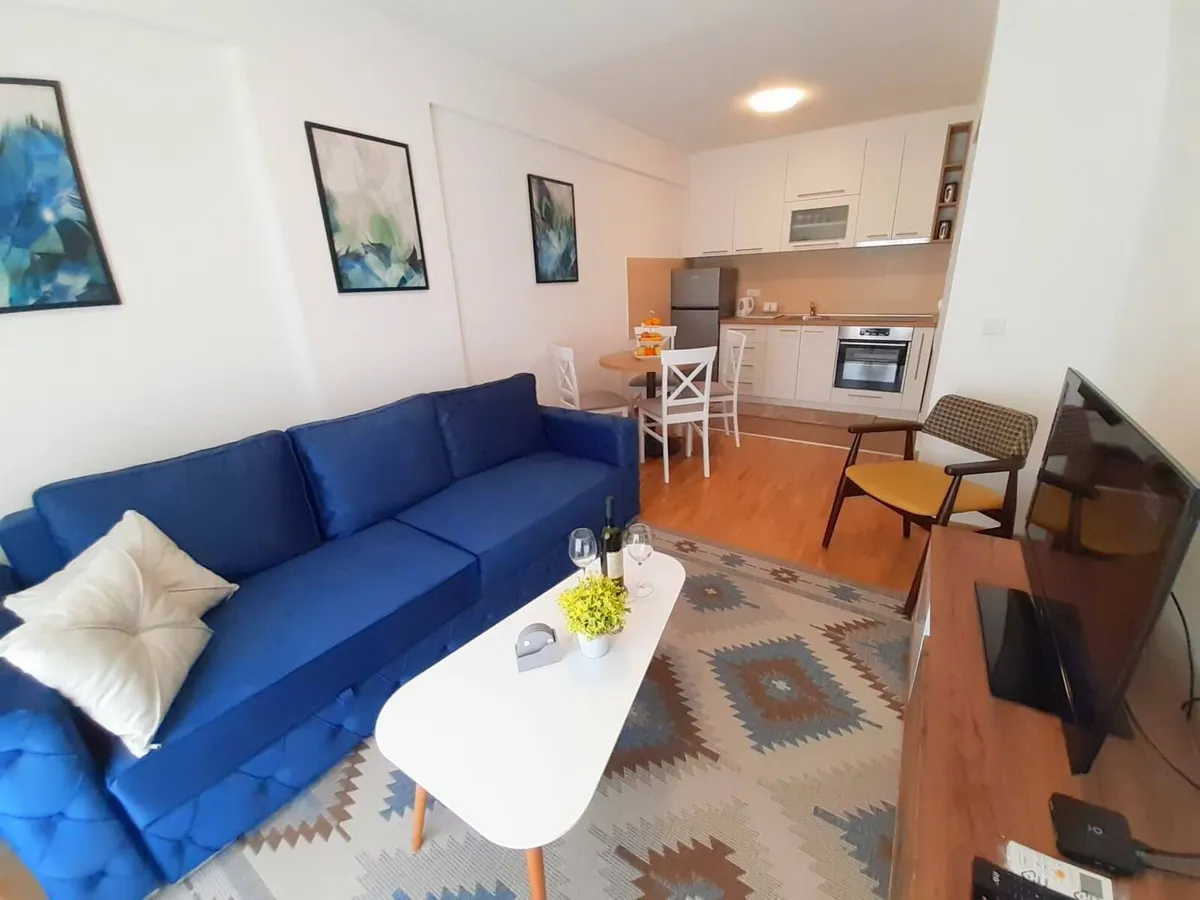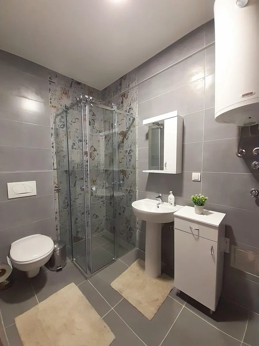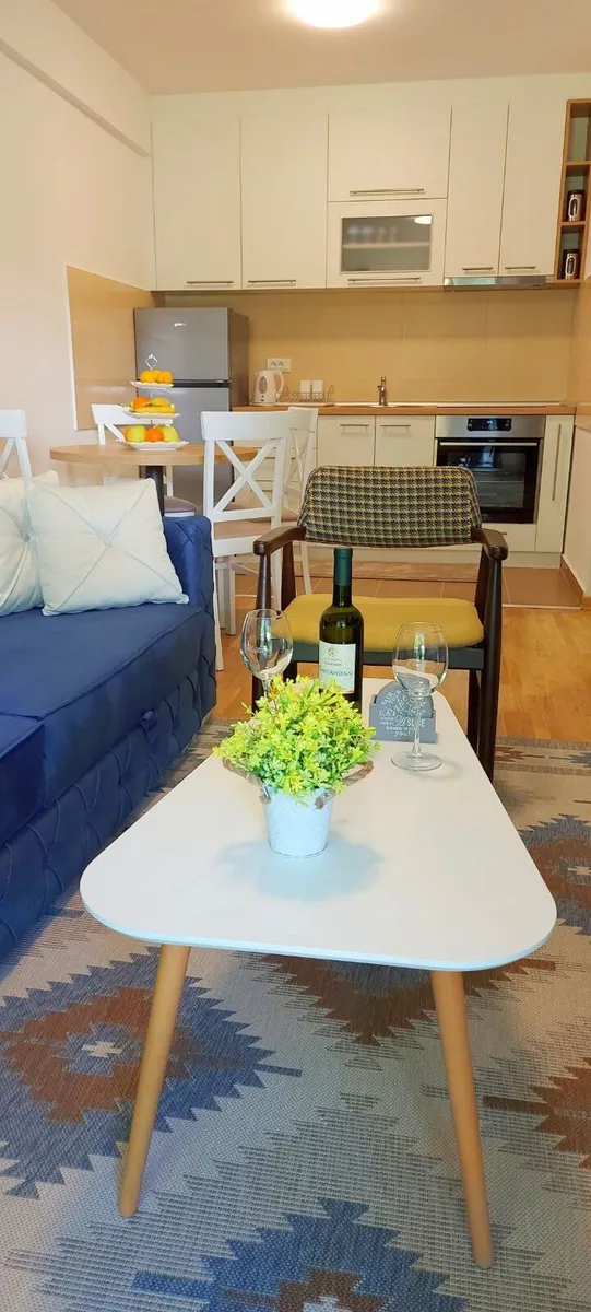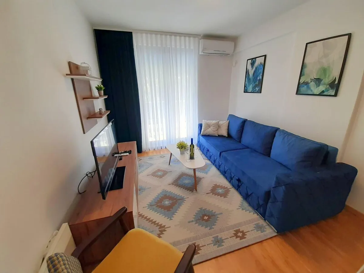 Apartman je potpuno opremljen za Vas idealan boravak u Vrnjackoj Banji. Poseduje odvojenu spavacu sobu sa izlazom na terasu, potpuno opremljenu kuhinju, kupatilo sa peskirima i fenom za kosu, klimu, kablovsku televiziju, WIFI internet i parking prostor.