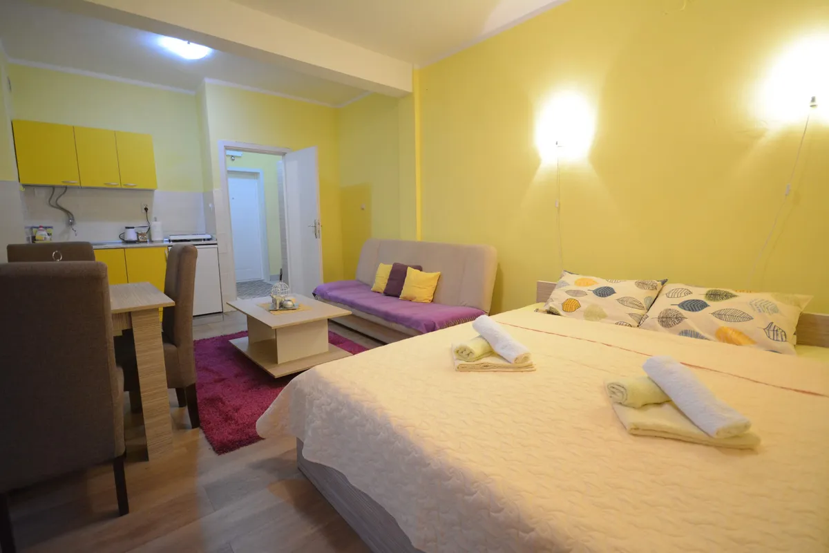Povrsina apartmana, tipa studio je 30 kvadratnih metara. U svom sastavu ima dnevni boravak sa francuskim lezajem i lezajem na rasklapanje. Pogodan je za smestaj 2-4 osobe. Pored toga, ima kompletno opremljenu kuhinju, hodnik i kupatilo.