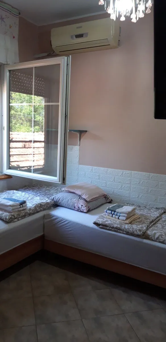 Poseduje kompletno opremljeno kuhinju i sobu sa dva ležaja sa memori naddusecima, tv sa kablovskom, WiFi, parking u dvorištu.
