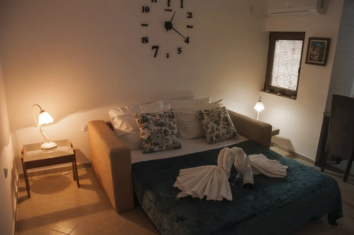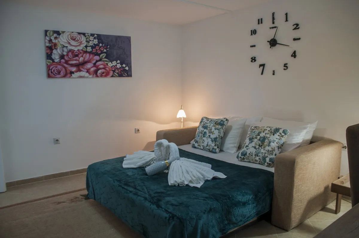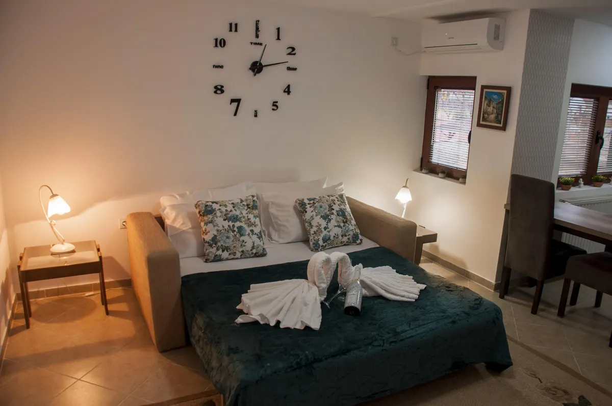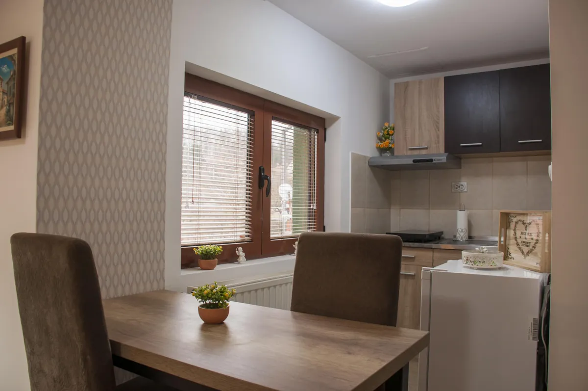 Tipa je studio i ima kuhinju, kupatilo, WiFi i kablivsku televiziju. Namenjen je za boravak 2 odrasle osobe.