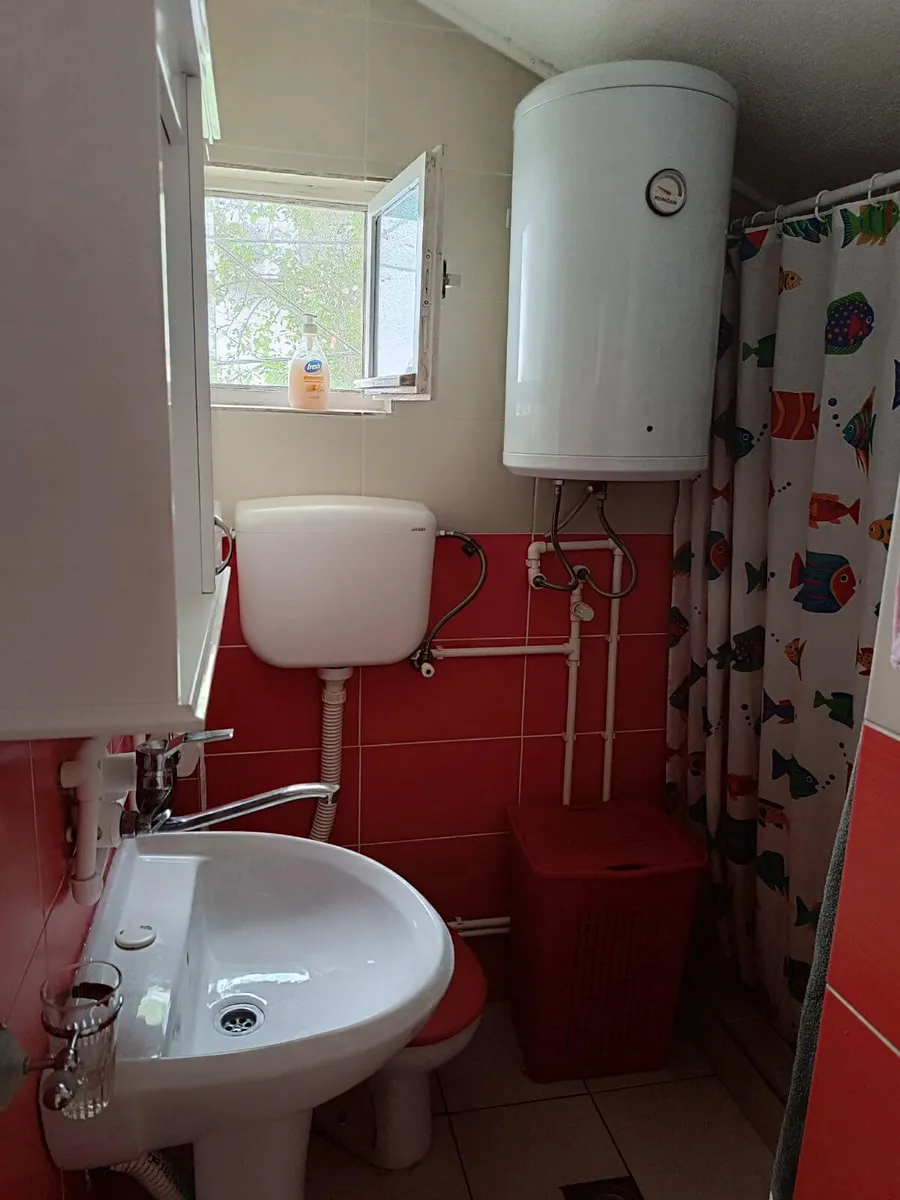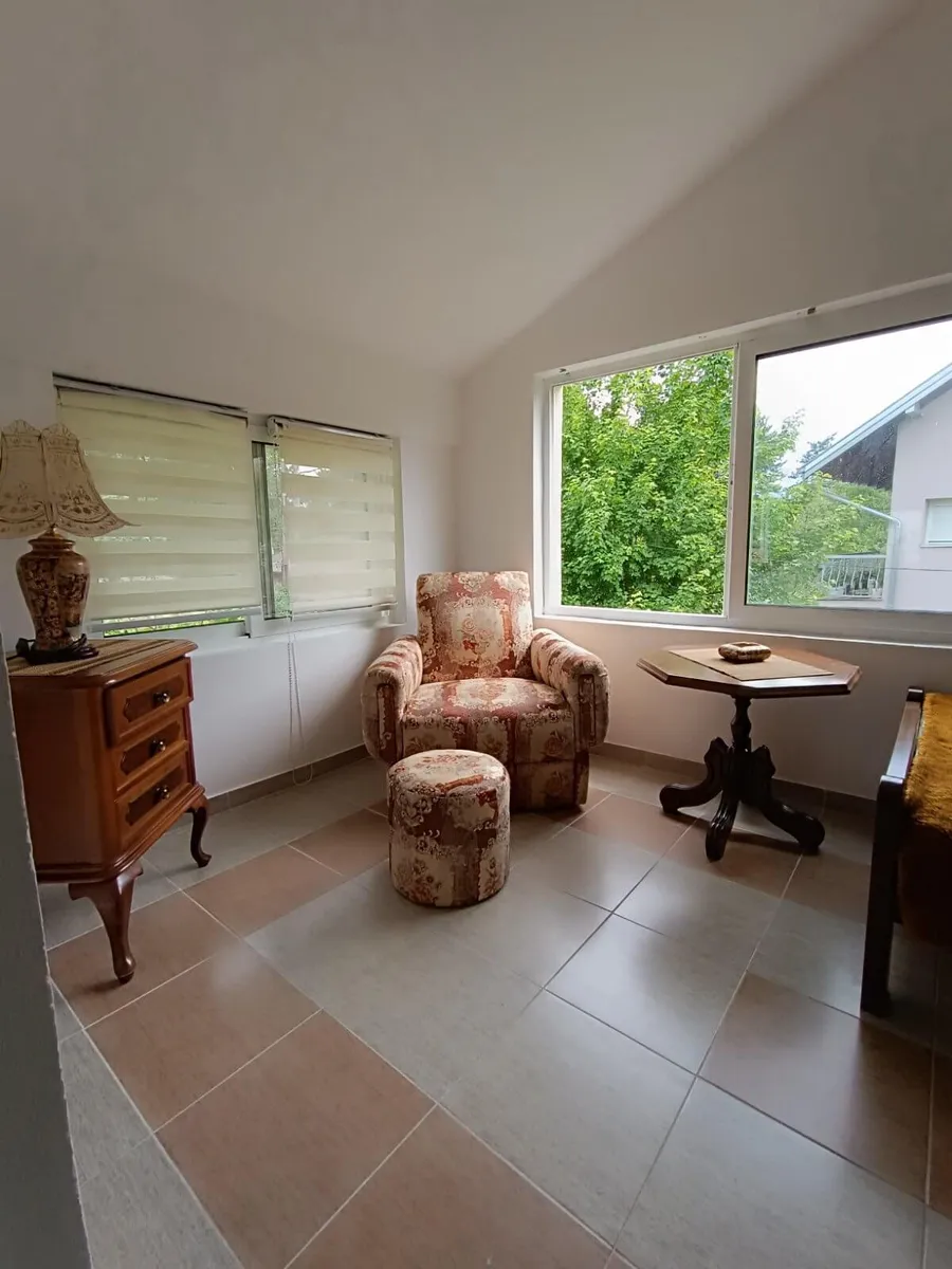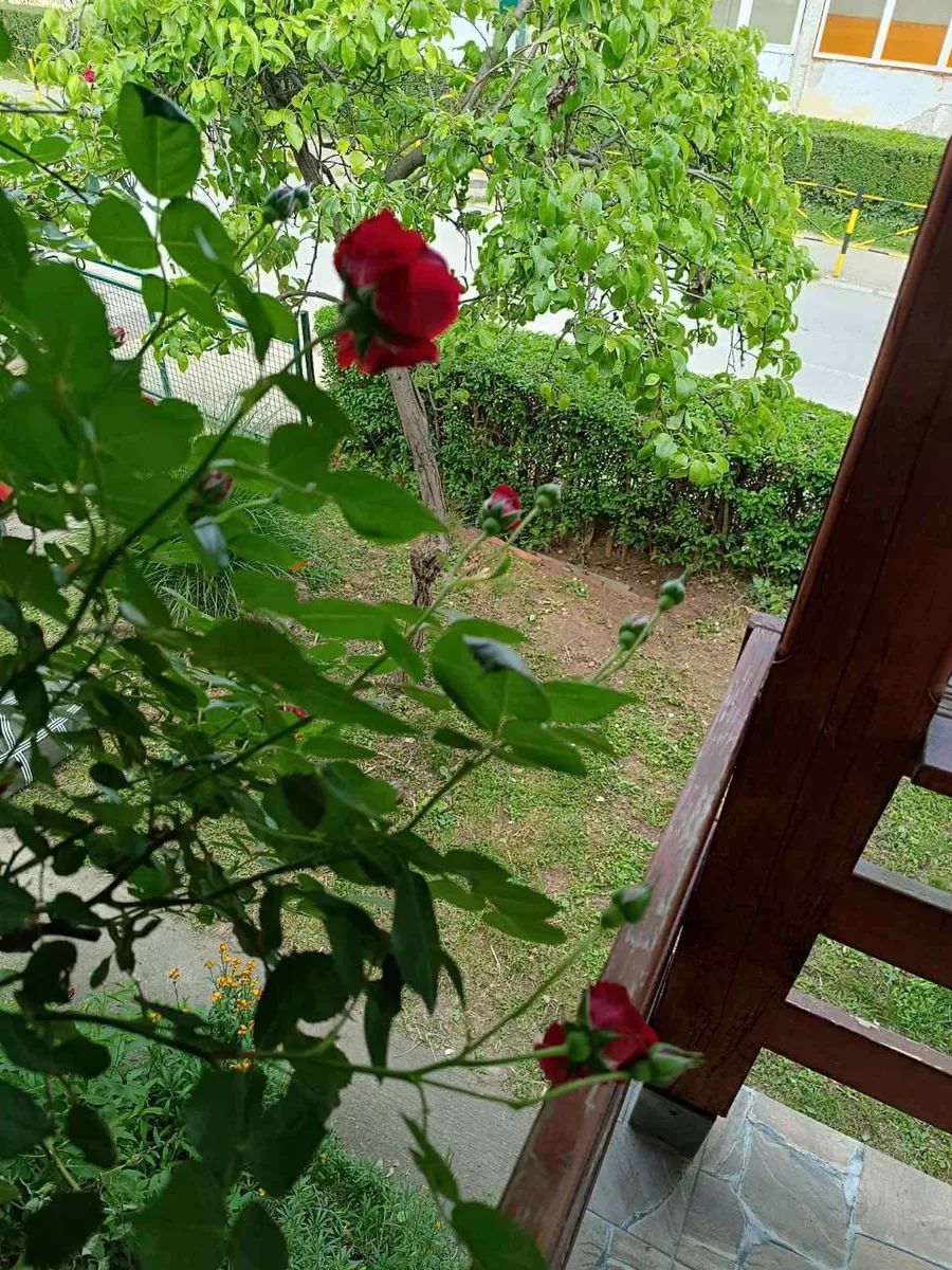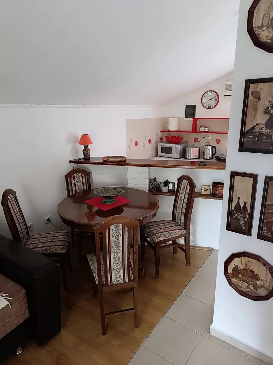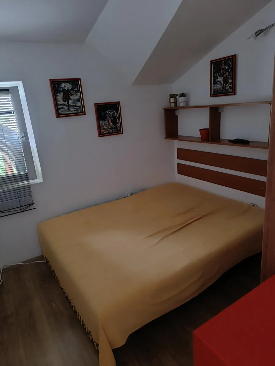 - Apartman je površine 45 m2 i nalazi se na spratu kuće sa dvorištem.