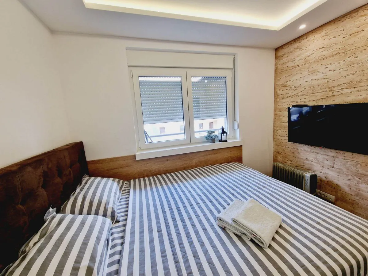 - wi-fi, kablovsku SBB, 2 TV uređaja sa smart funkcijom, inverter klima uređaj, fen, peglu, posteljinu, peškire