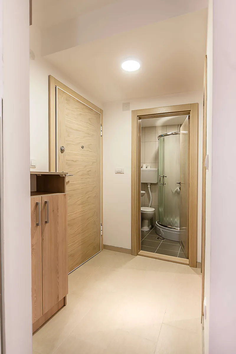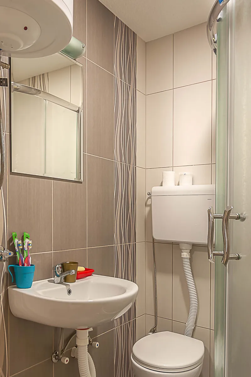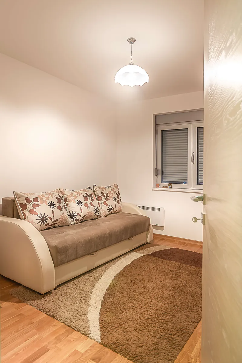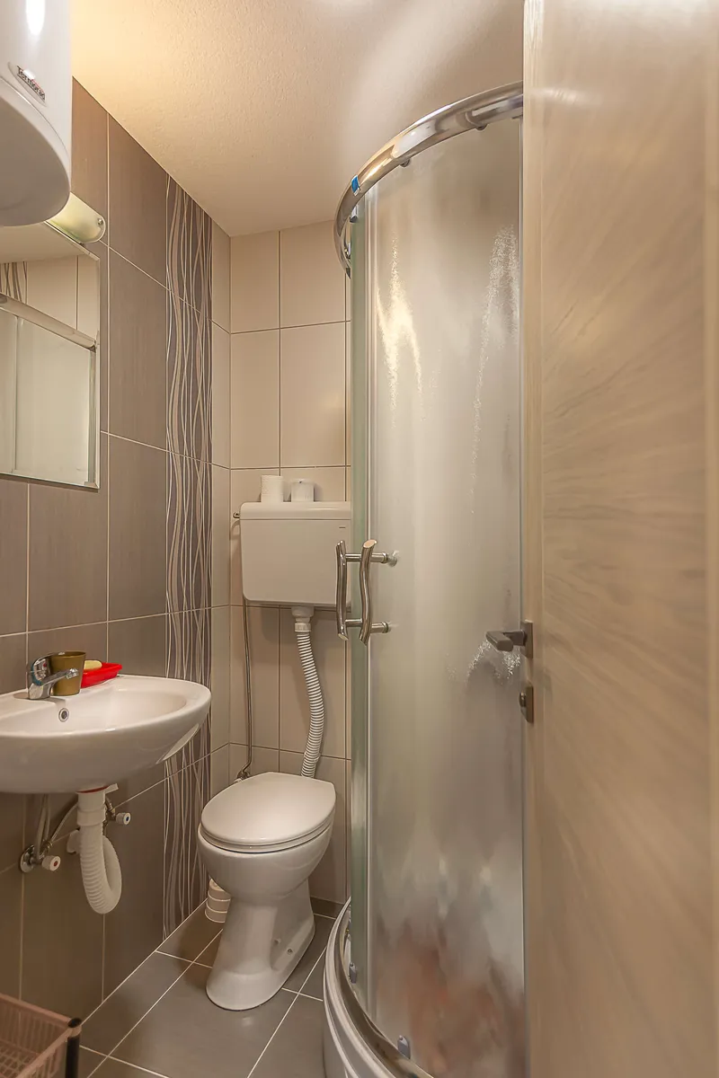 Nov je, nalazi se u visokom prizemlju, opremljen novim aparatima za domaćinstvo (takođe i veš mašinom). Namenjen je za boravak do 3 osobe. Ima parking mesto, interfon, terasu, kablovsku tv, Internet, fen itd.