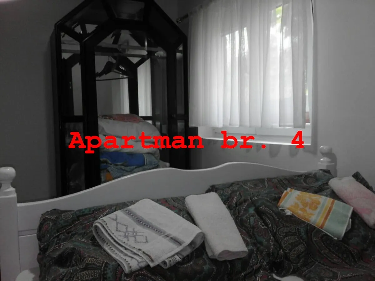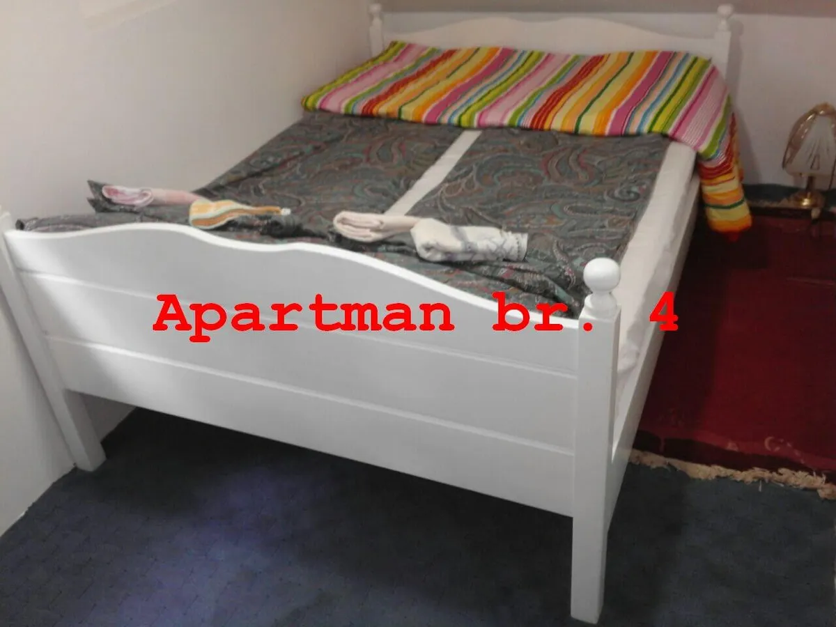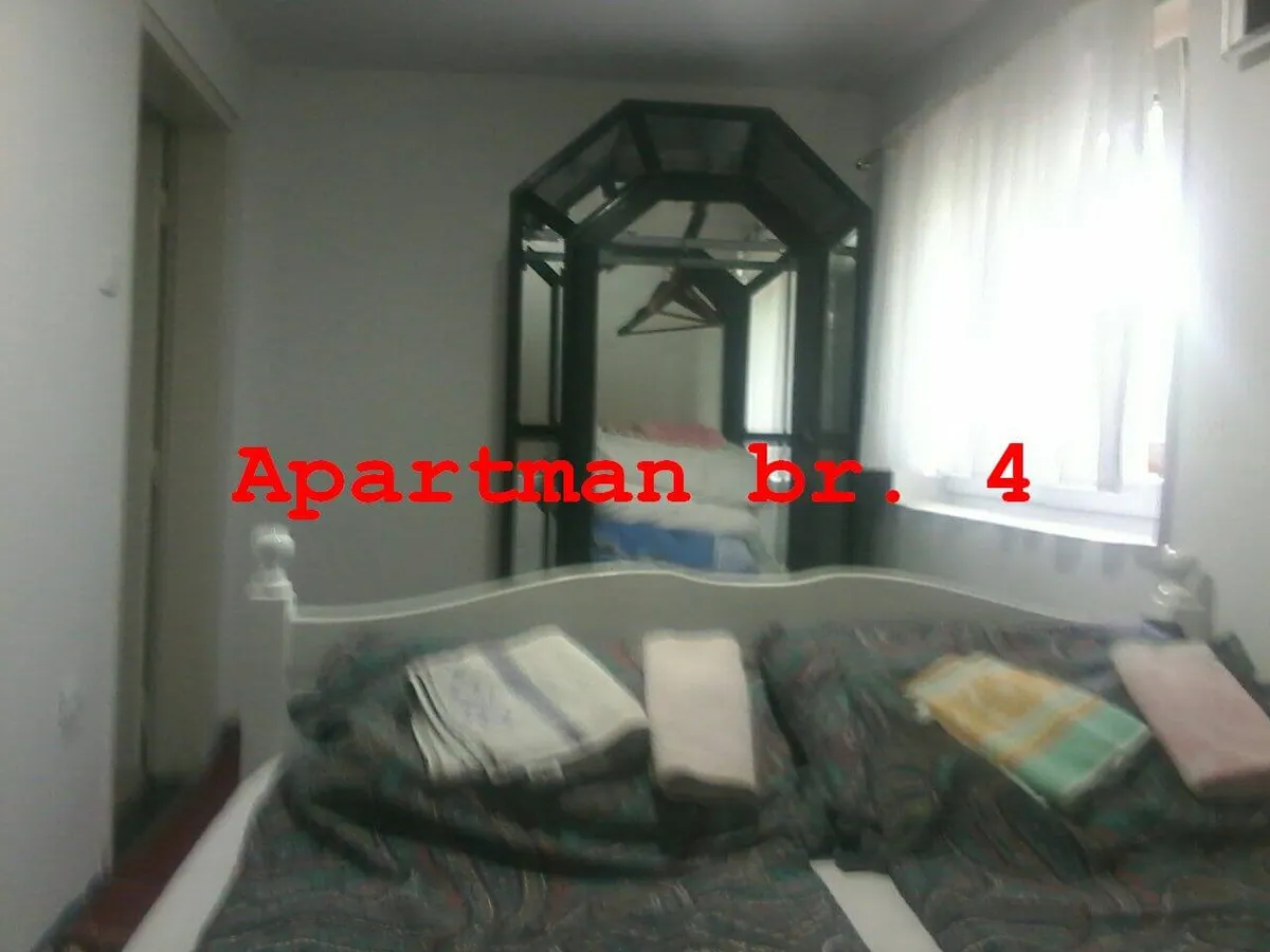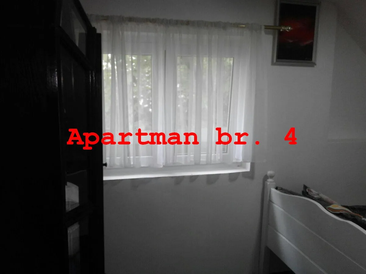 Apartman br. 4 se nalazi na 500 m od centar Vrnjačke Banje. Ima odvojenu spavaću sobu (francuski ležaj), dnevni boravak (trosed i dvosed) sa kuhinjom, hodnik, terasu i trem. Opremljen je Internetom, TV-om i klimom.