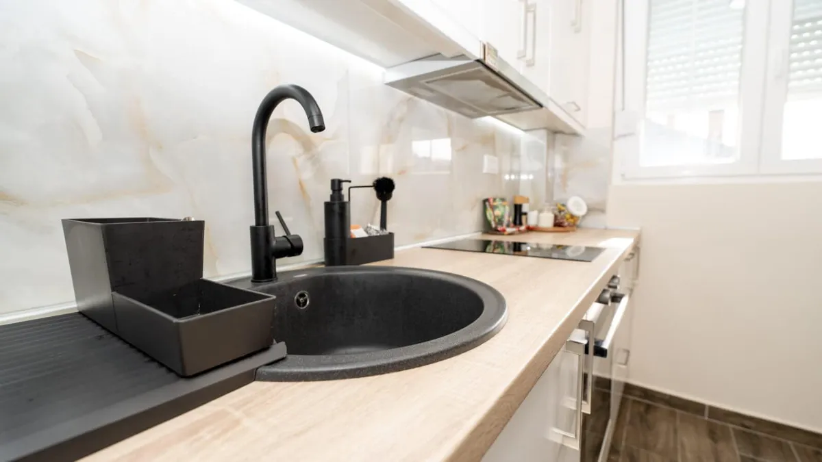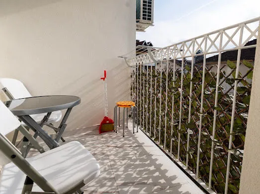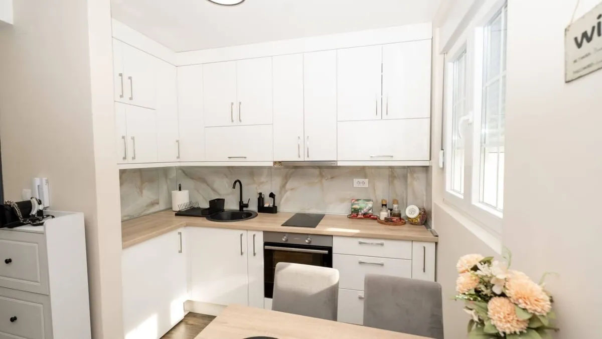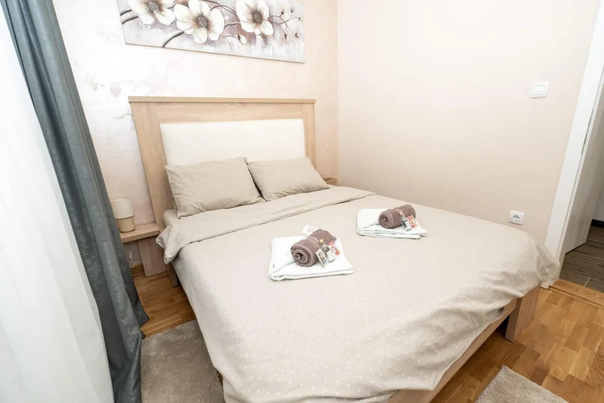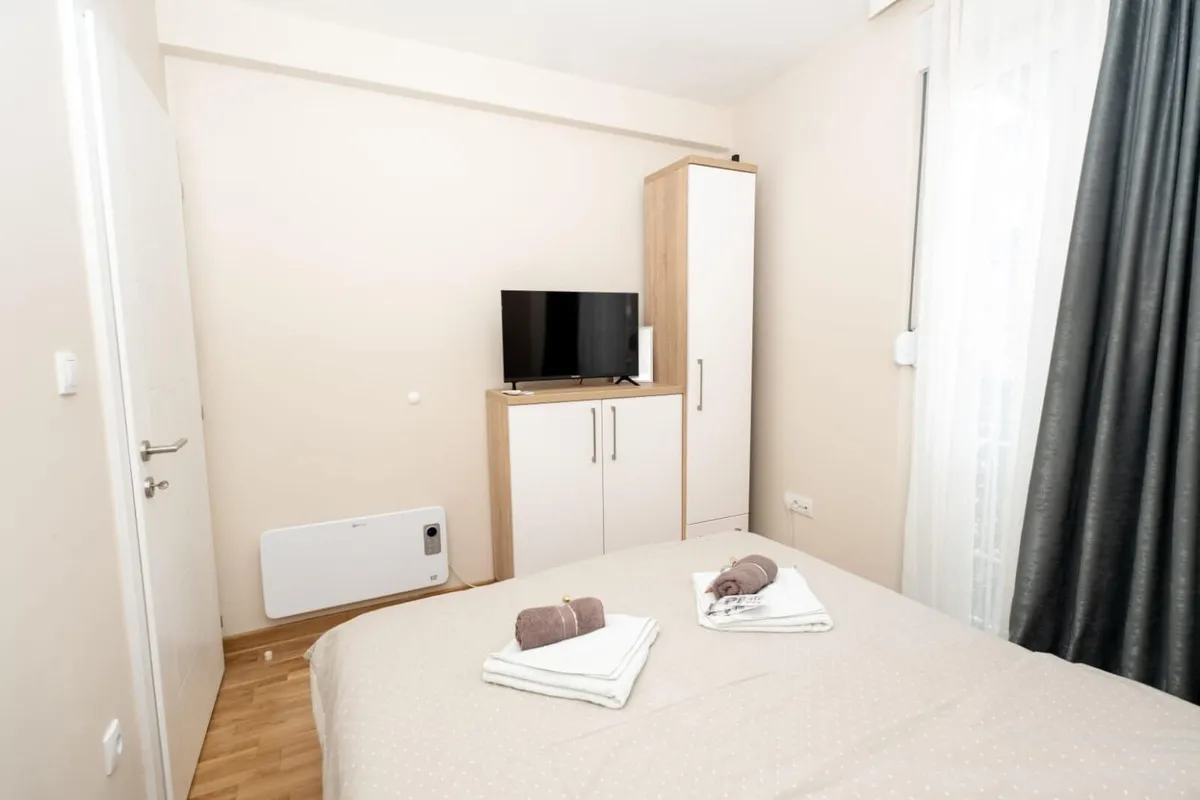 Apartman je moderno opremljen i sastoji se od spavaće sobe, dnevne sobe, kupatila, kompletno opremljene kuhinje i balkona.