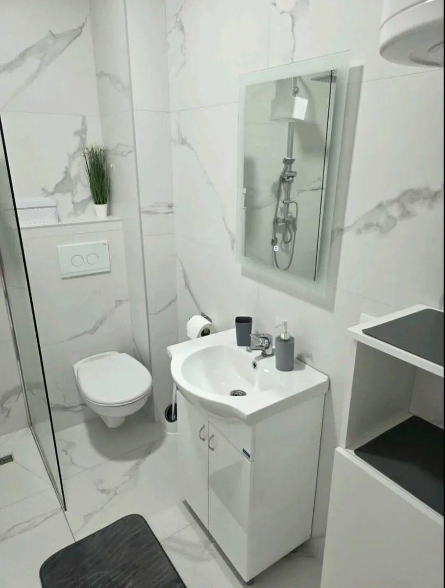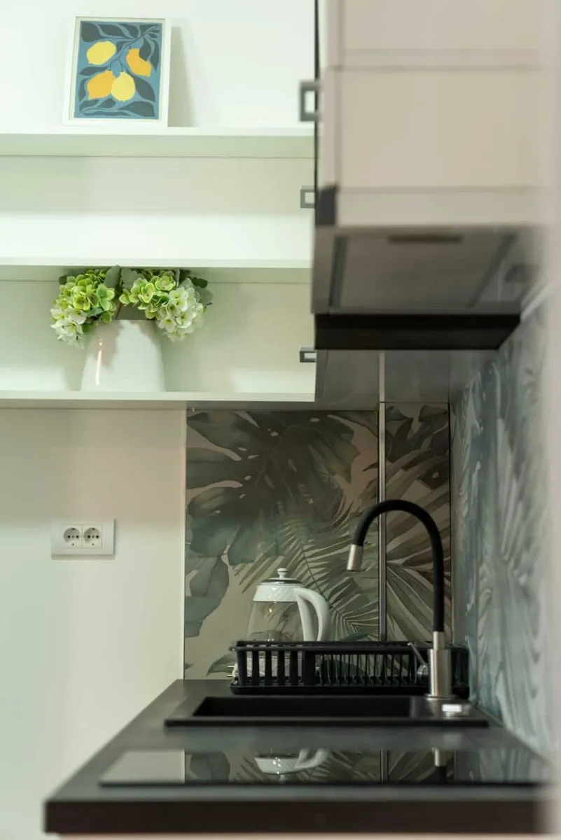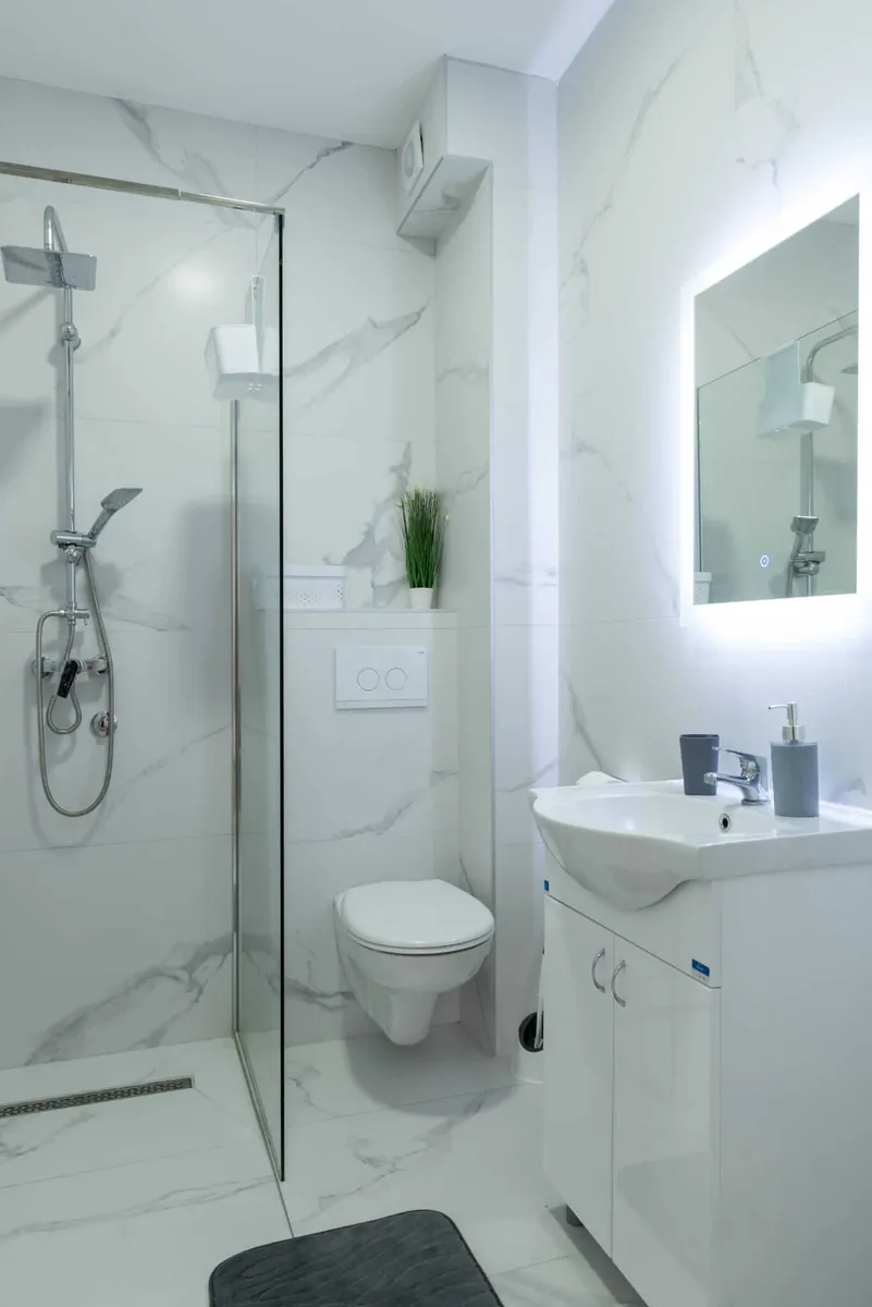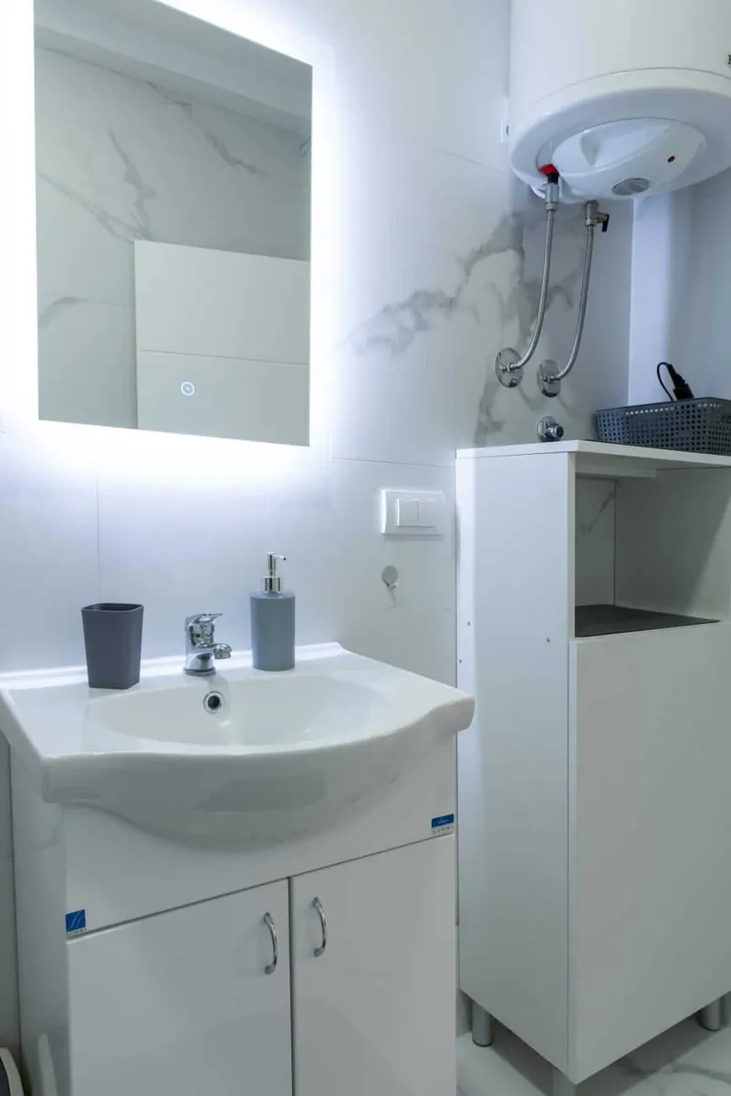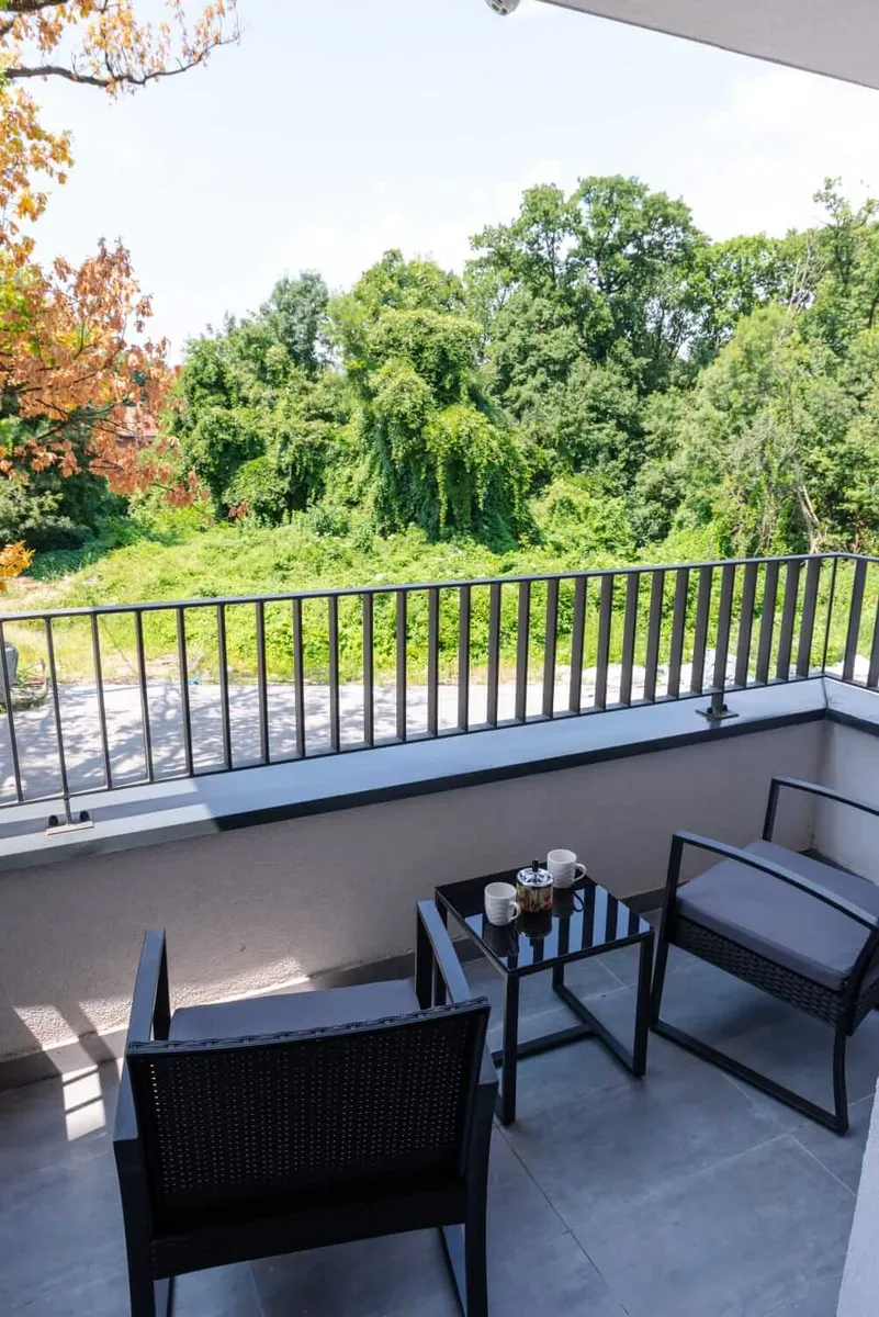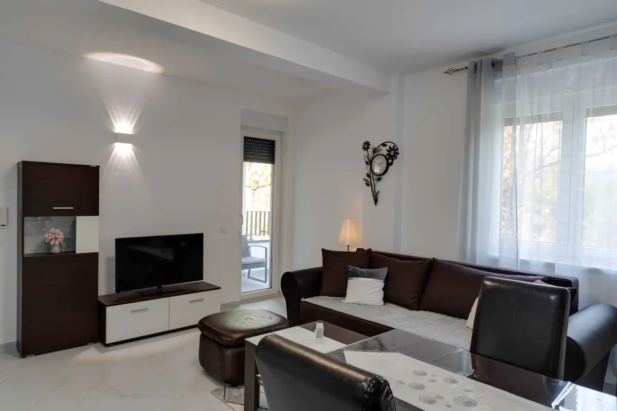 Poseduju odvojenu spavaću sobu sa francuskim ležajem, dnevnu sobu sa opremljenom kuhinjom, kupatilo sa tuš kabinom i terasu. Apartmani imaju klimu, WIFI i kablovsku televiziju. Zgrada ima lift i parking prostor. U neposrednoj blizini nalazi se market, pekara, apoteka, frizer i kozmetički salon...