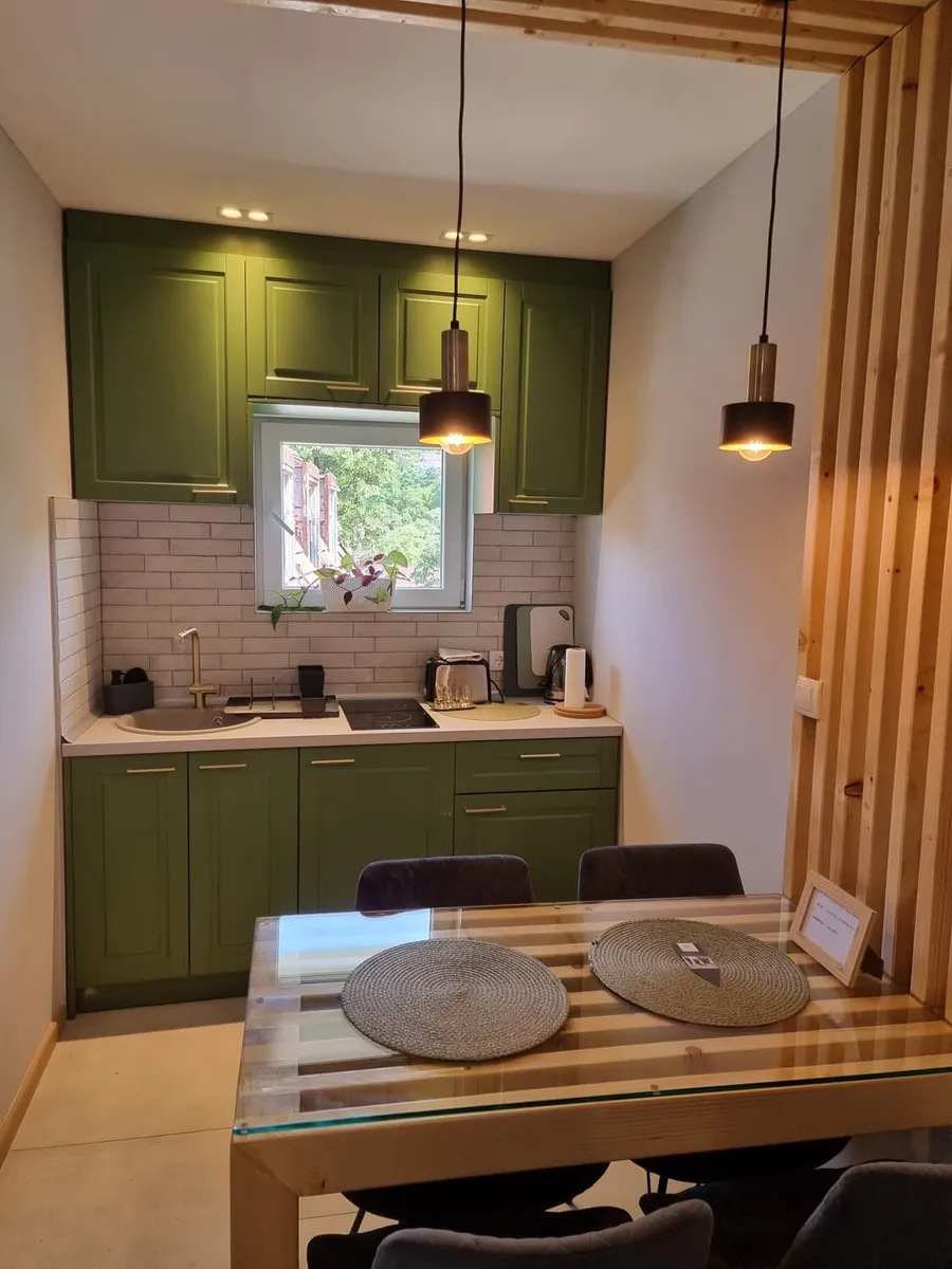 Objekat raspolaže sa tri moderno opremljena apartmana, sa posebnim ulazom, obezbeđenim besplatnim parking mestom
