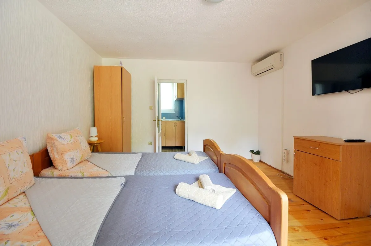 Apartmani Marina u ponudi imaju 2 apartmana i dva studia. Apartmani poseduju prostoriju za dnevni boravak i odvojenu spavaću sobu. U sklopu dnevnog boravaka je kompletno opremljena čajna kuhinja. Apartman su namenjeni za boravak 4 osobe.
