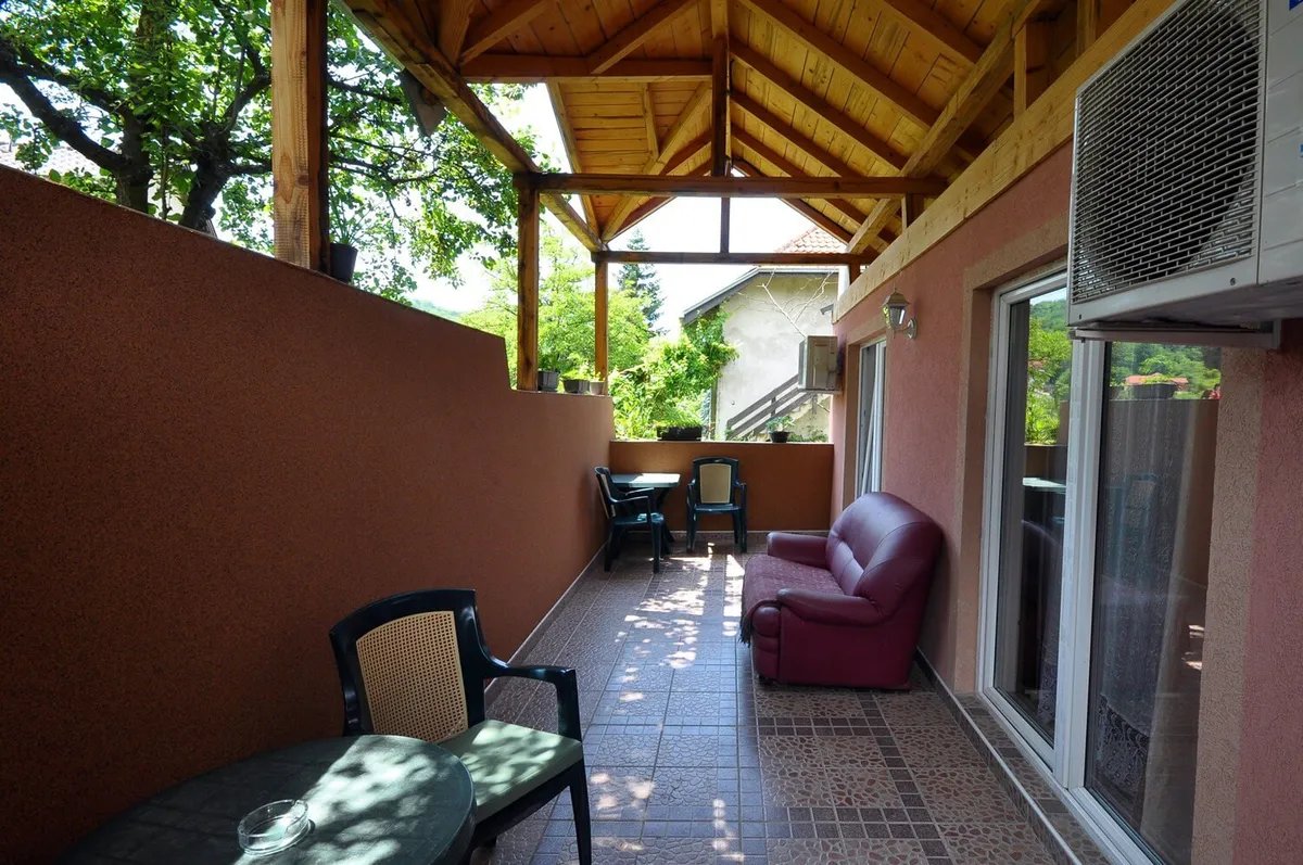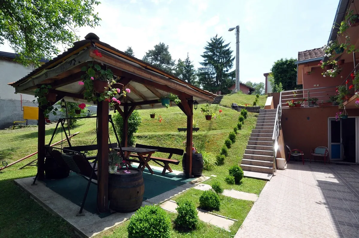 Gostima je na raspolaganju dvorište, ljuljaška i sto sa baštenskim stolicama.