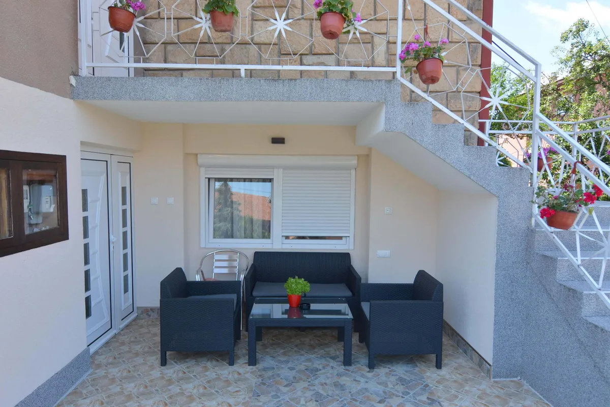 Raspolaže sa 3 apartmana i 2 sobe. Opremljen je WiFi-om, kablovskom televizijom, klimom i parkingom u dvorištu smeštaja. Gosti mogu sedeti u dvorištiu na baštanskim garniturama i koristiti roštilj.