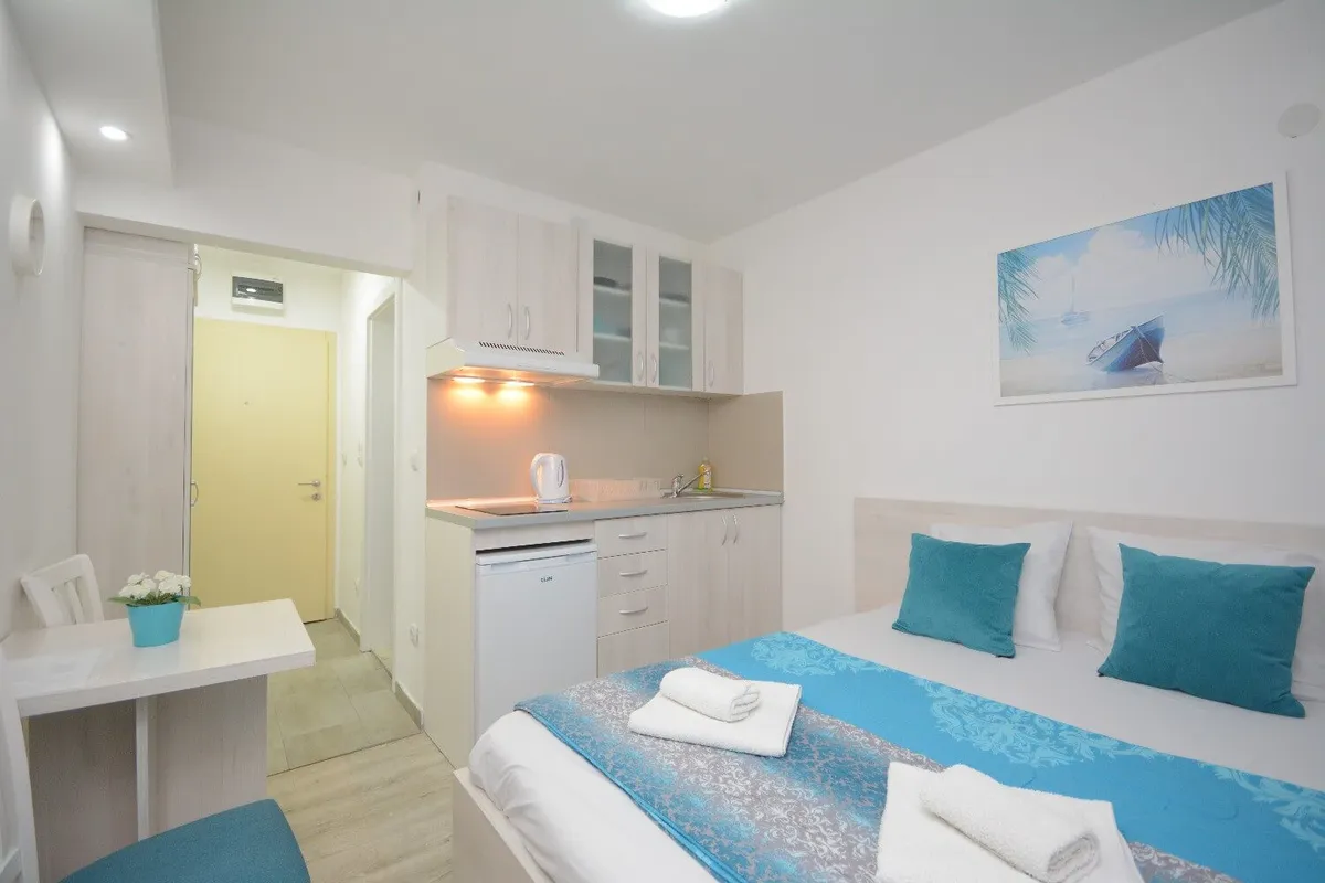 U ponudi su dva apartmana tipa studio. Prvi studio namenjen je za boravak 2 + 2 osobe, drugi studio za boravak 2 osobe.