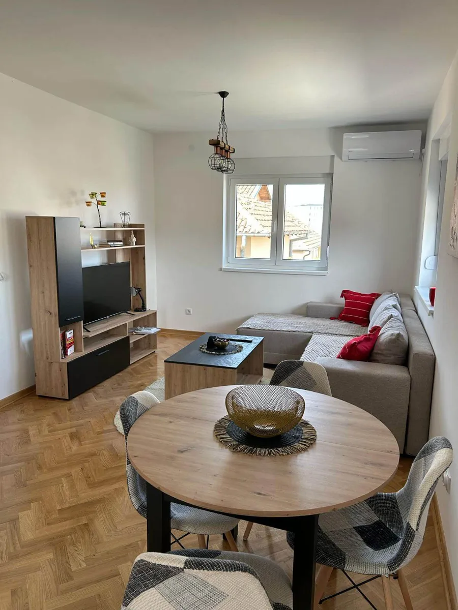 * Apartman se sastoji od dnevnog boravka u kom je garnitura na razvlačenje i spavaće sobe u kojoj je francuski ležaj