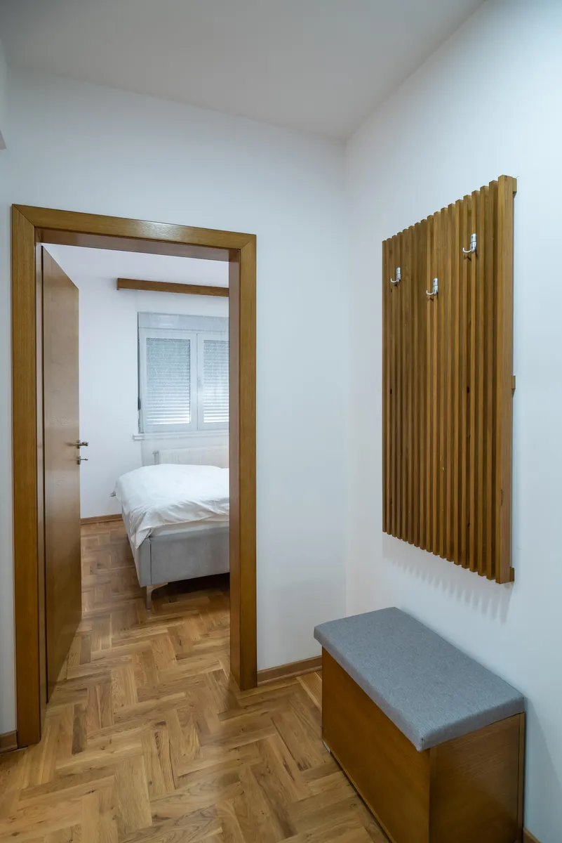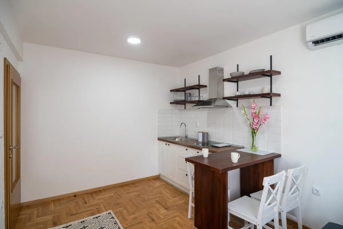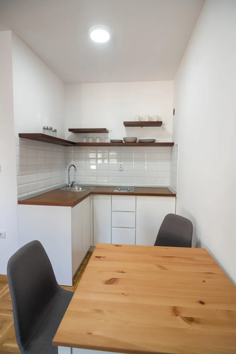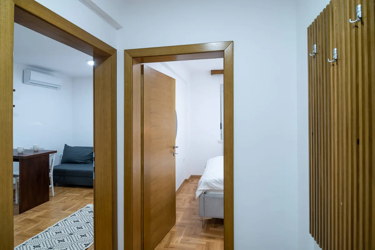 Apartman Višnja (34 m2) - odvojena spavaća soba, kompletno opremljena kuhinja u sklopu dnevnog boravka i kupatilo. Opremljen za boravak tri odrasle osobe.
