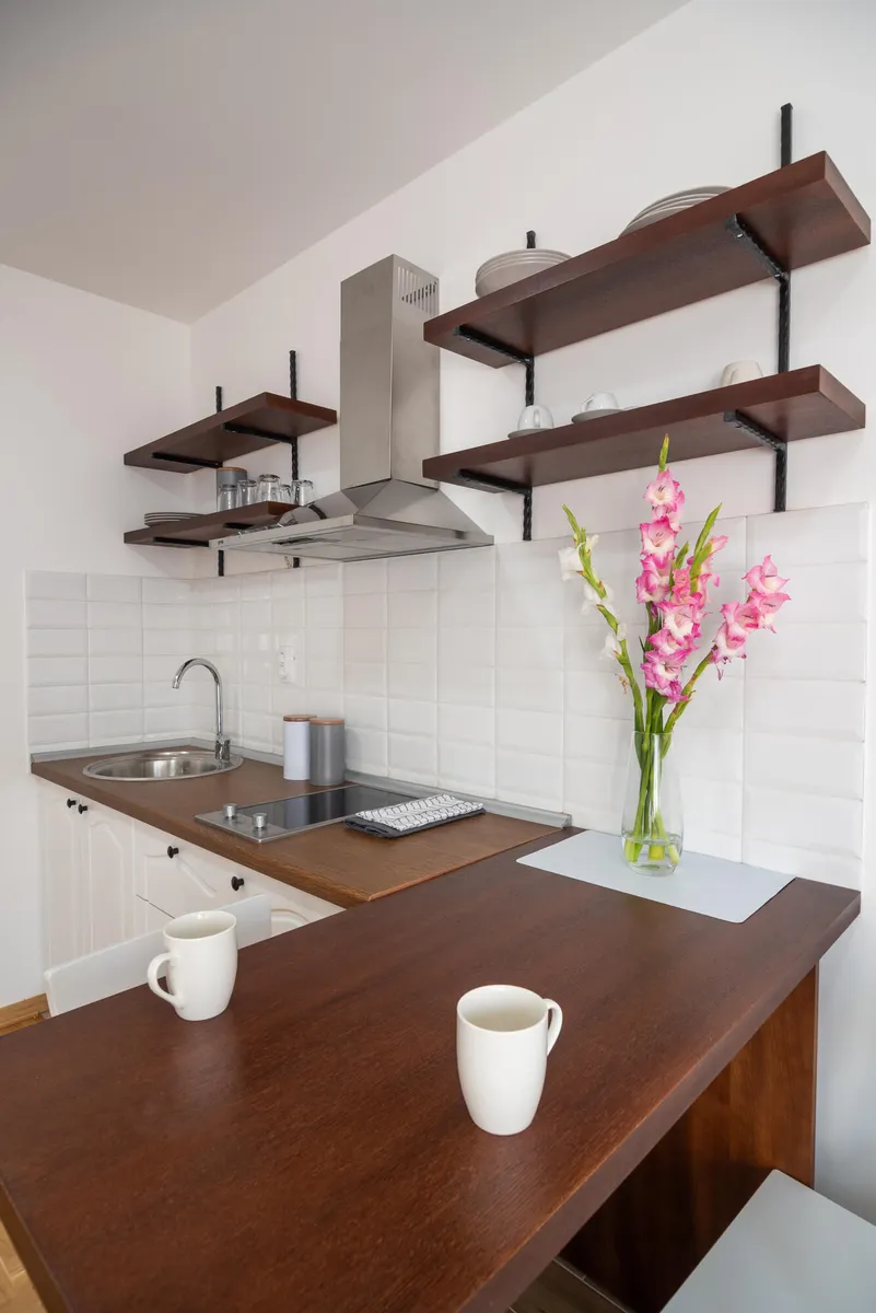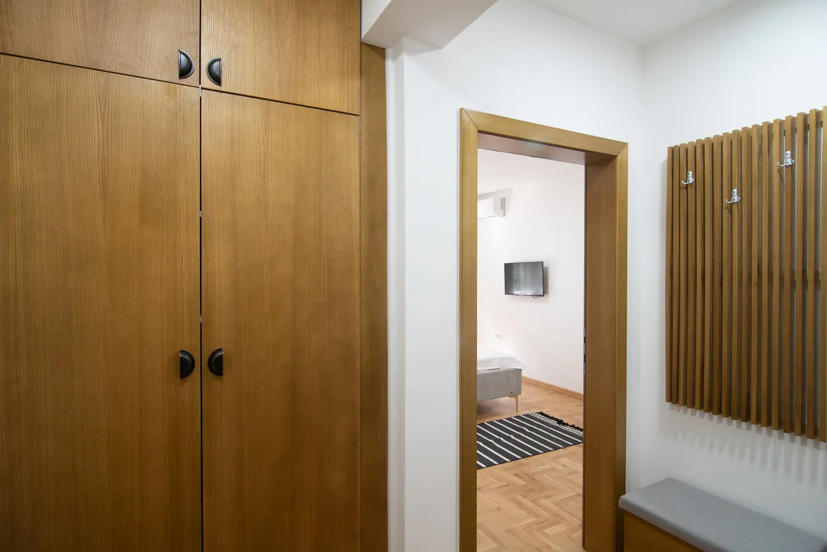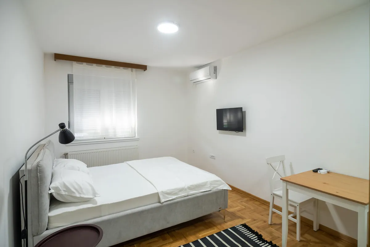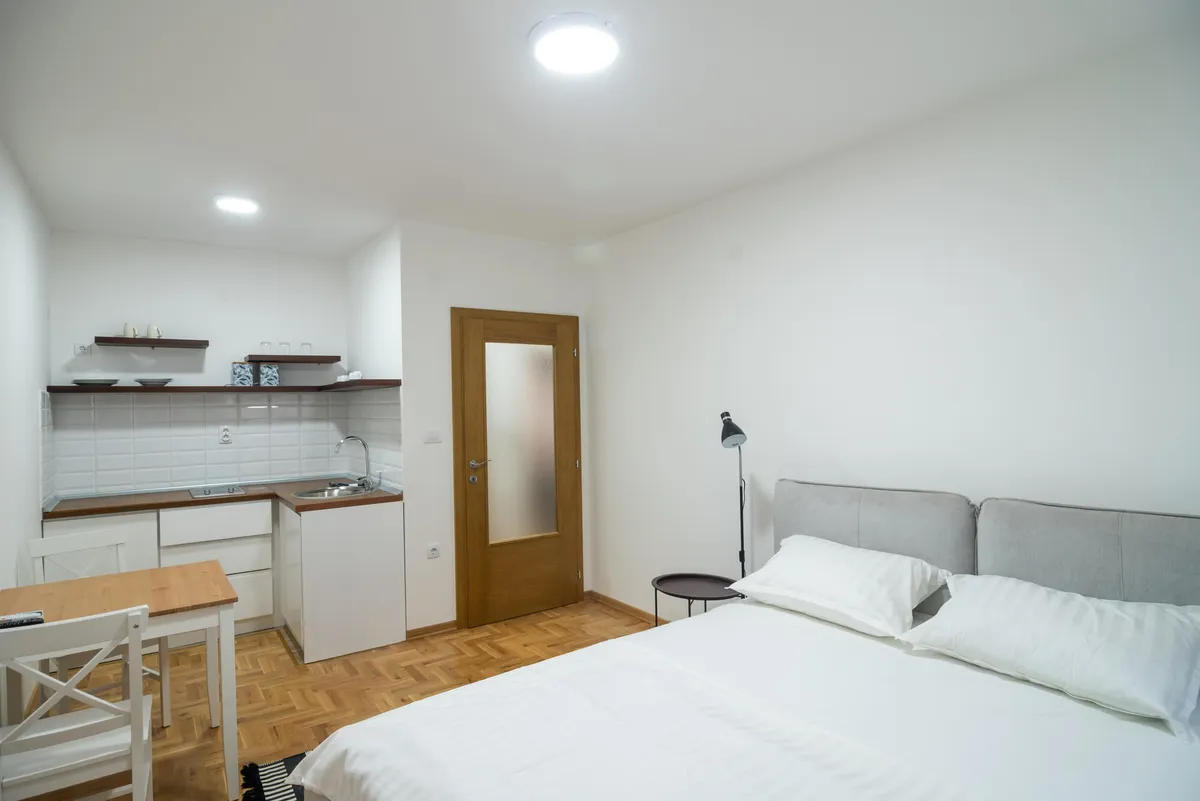 Apartman Višnja (34 m2) - odvojena spavaća soba, kompletno opremljena kuhinja u sklopu dnevnog boravka i kupatilo. Opremljen za boravak tri odrasle osobe.