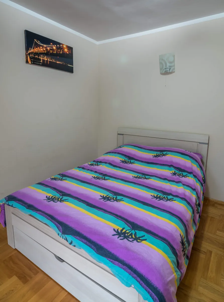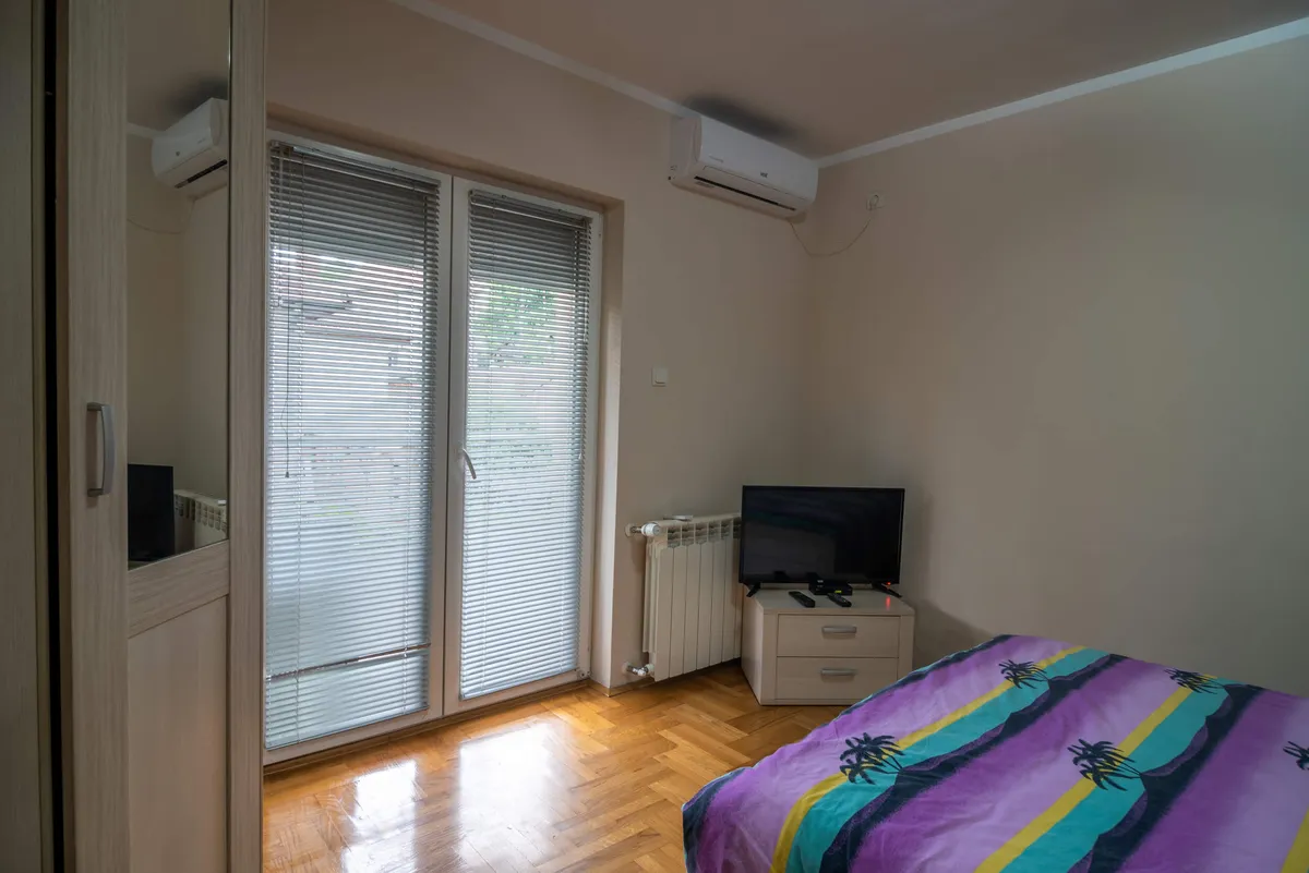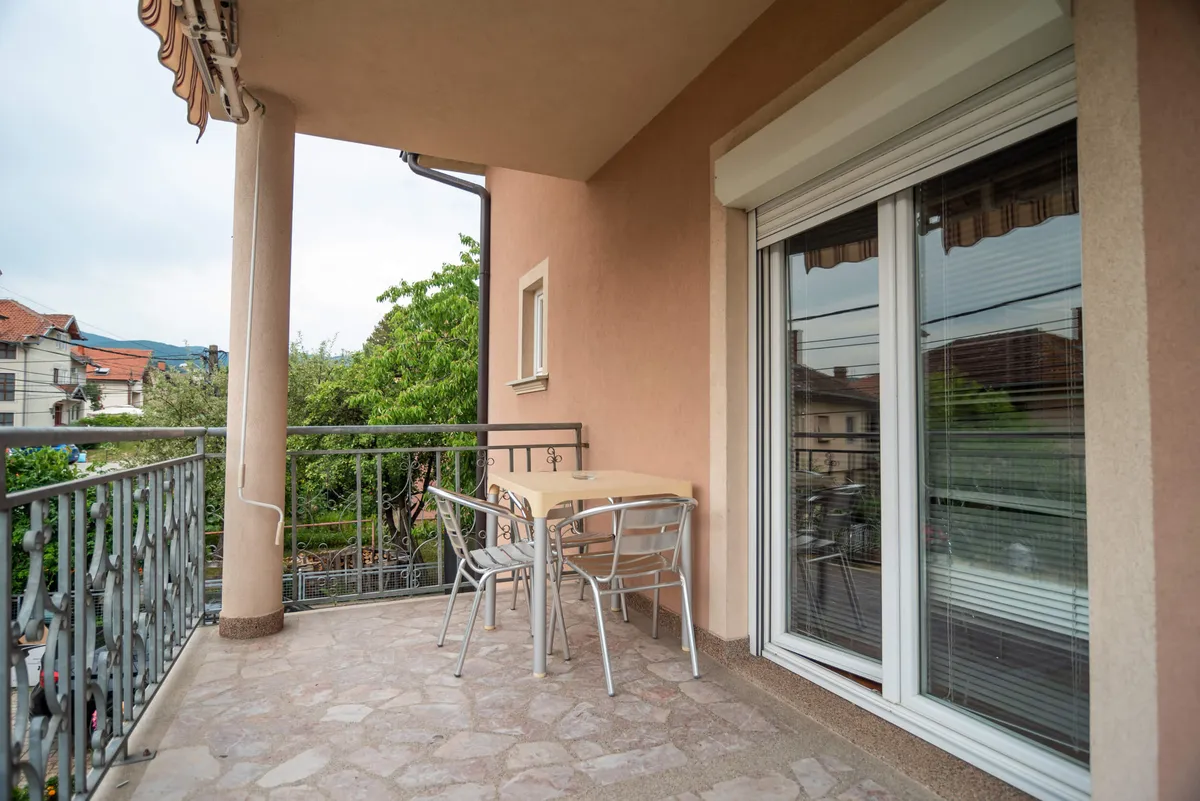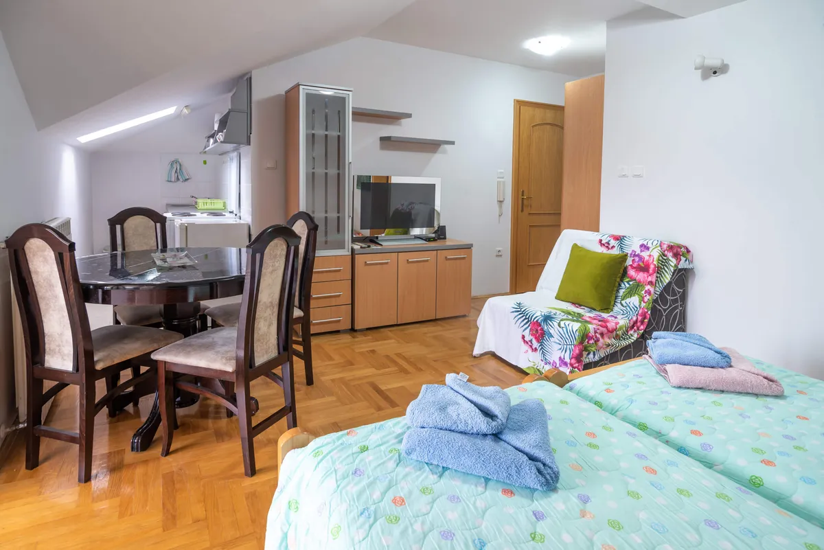 1. Apartman broj 1 poseduje odvojenu spavaću sobu, dnevni bravak sa kuhinjom, kupatilo i terasu. Namenjen je za boravak 2+2 osobe. Najam apartmana 40 evra.