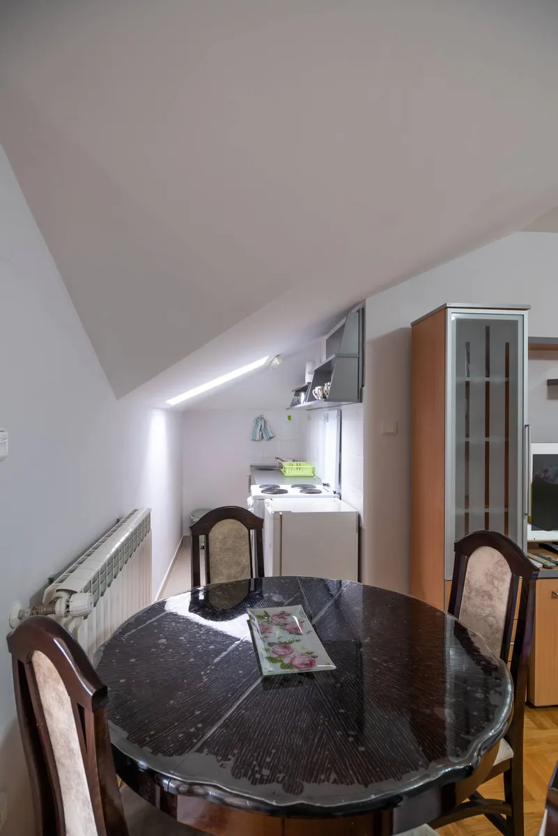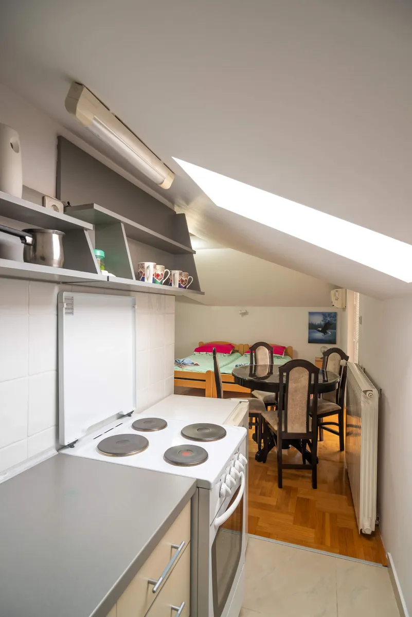 4. Apartman broj 4. namenjen je za boravak 2+1 osobe. Takodje poseduje kuhinju, kupatilo i veliku terasu. Cena 30 evra.