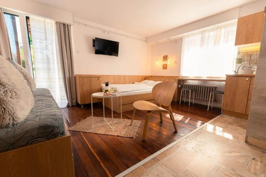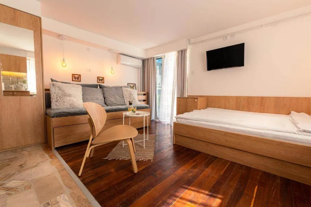 Tri studia i dva apartmana sa odvojenom spavaćom sobom zaokružuju našu ponudu i mogu da zadovolje potrebe najrazličitijih profila gostiju.