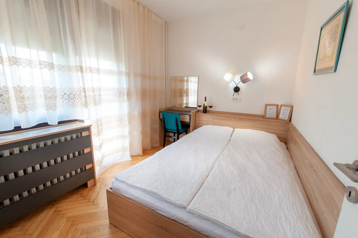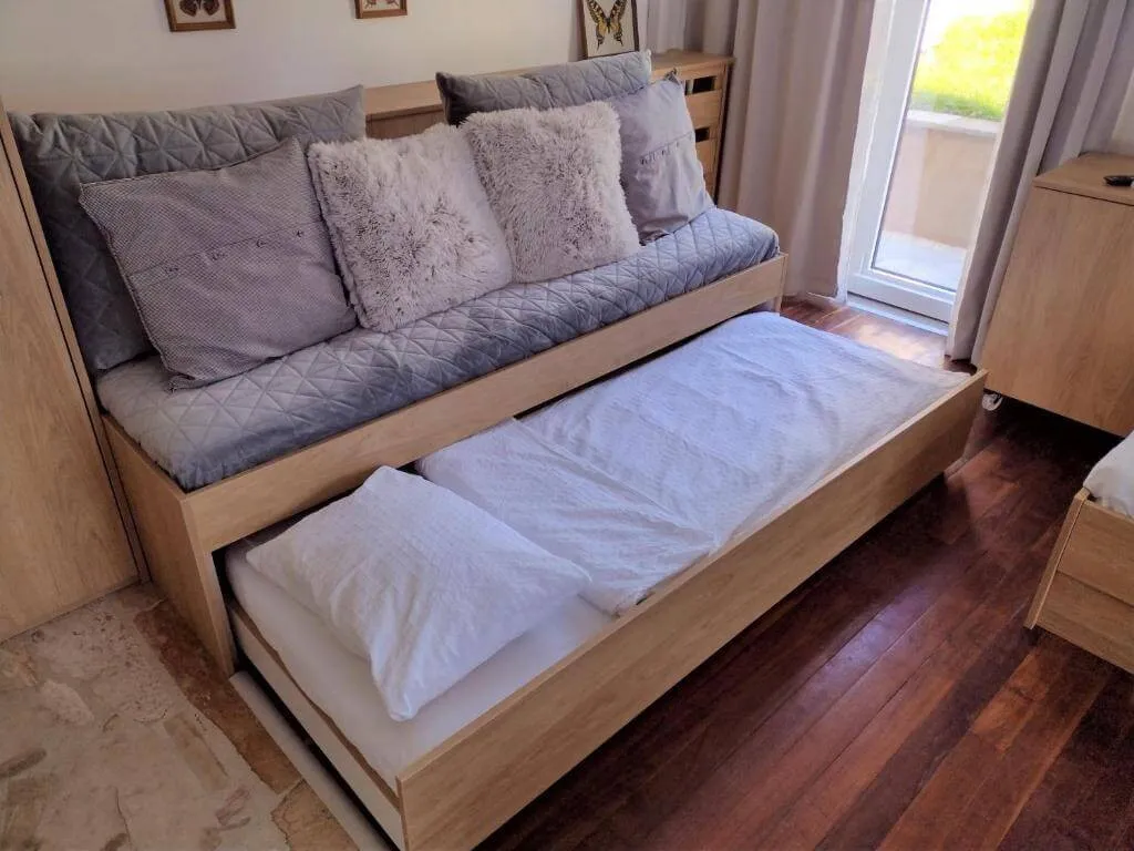 Apartman sa odvojenom spavaćom sobom Chic (max pet odraslih osoba) nudi vrhunski doživljaj savremeno dizajniranog komfora. Odličan za prijatelje, mlađe i starije parove koji žele veći komfor i porodice. Sklopivi i prenosivi singl krevet omogućava fleksibilno korišćenje prostora.