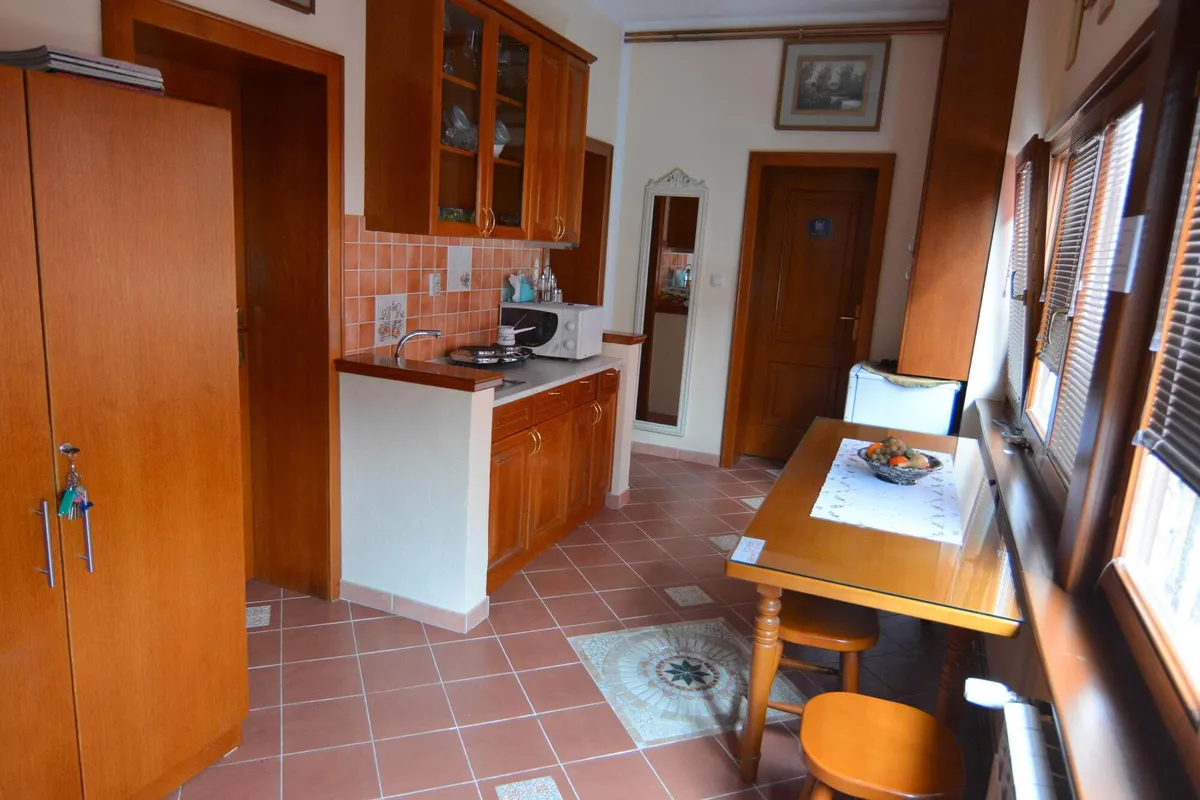 U centralnom delu se nalazi kuhinja sa trpezariskom stolom.