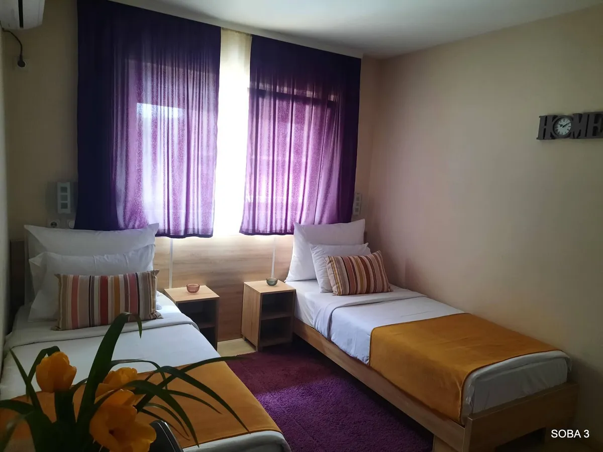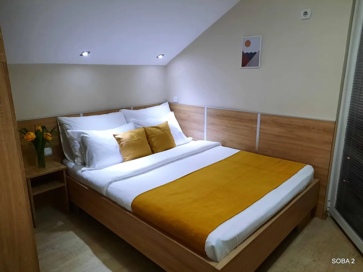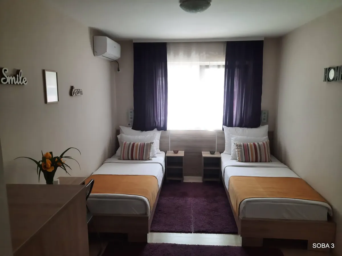 Smeštaj raspolaže sa jednokrevetnim, dvokrevetnim i trokrevetnim sobama uz mogućnost dodavanja pomoćnog ležaja u dvokrevetnim i trokrevetnim sobama.