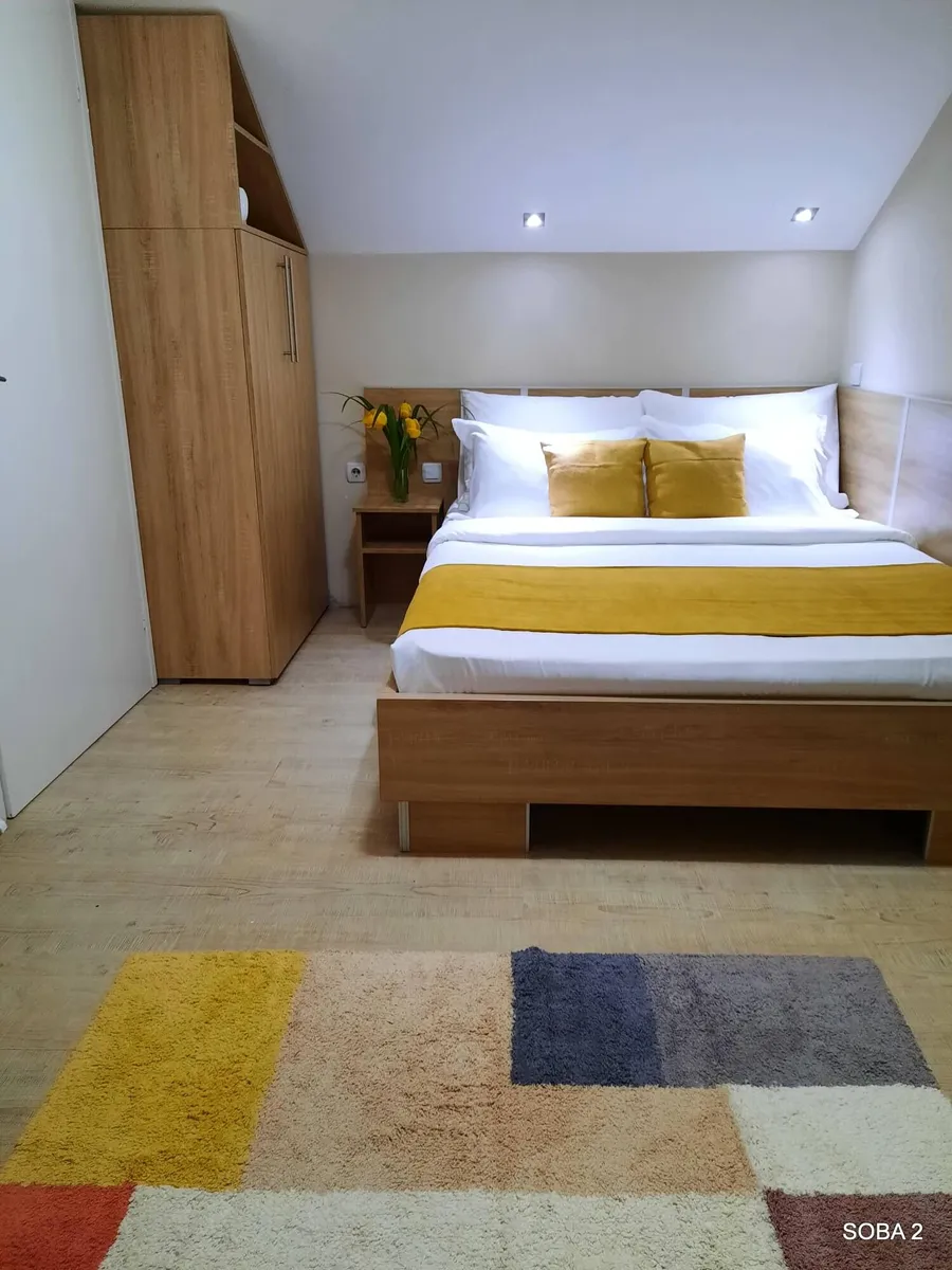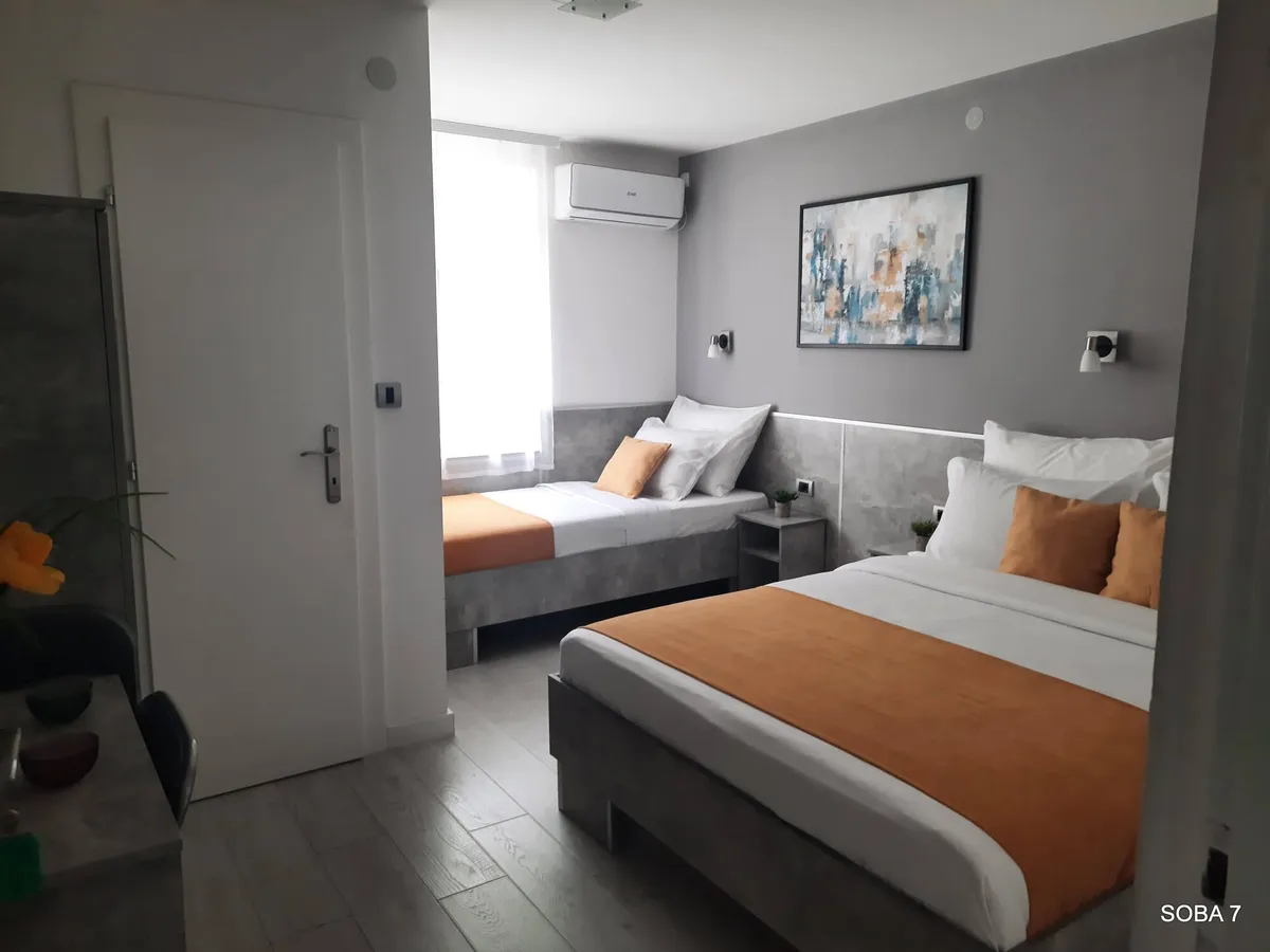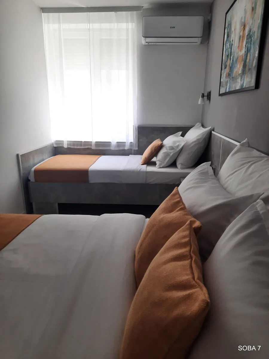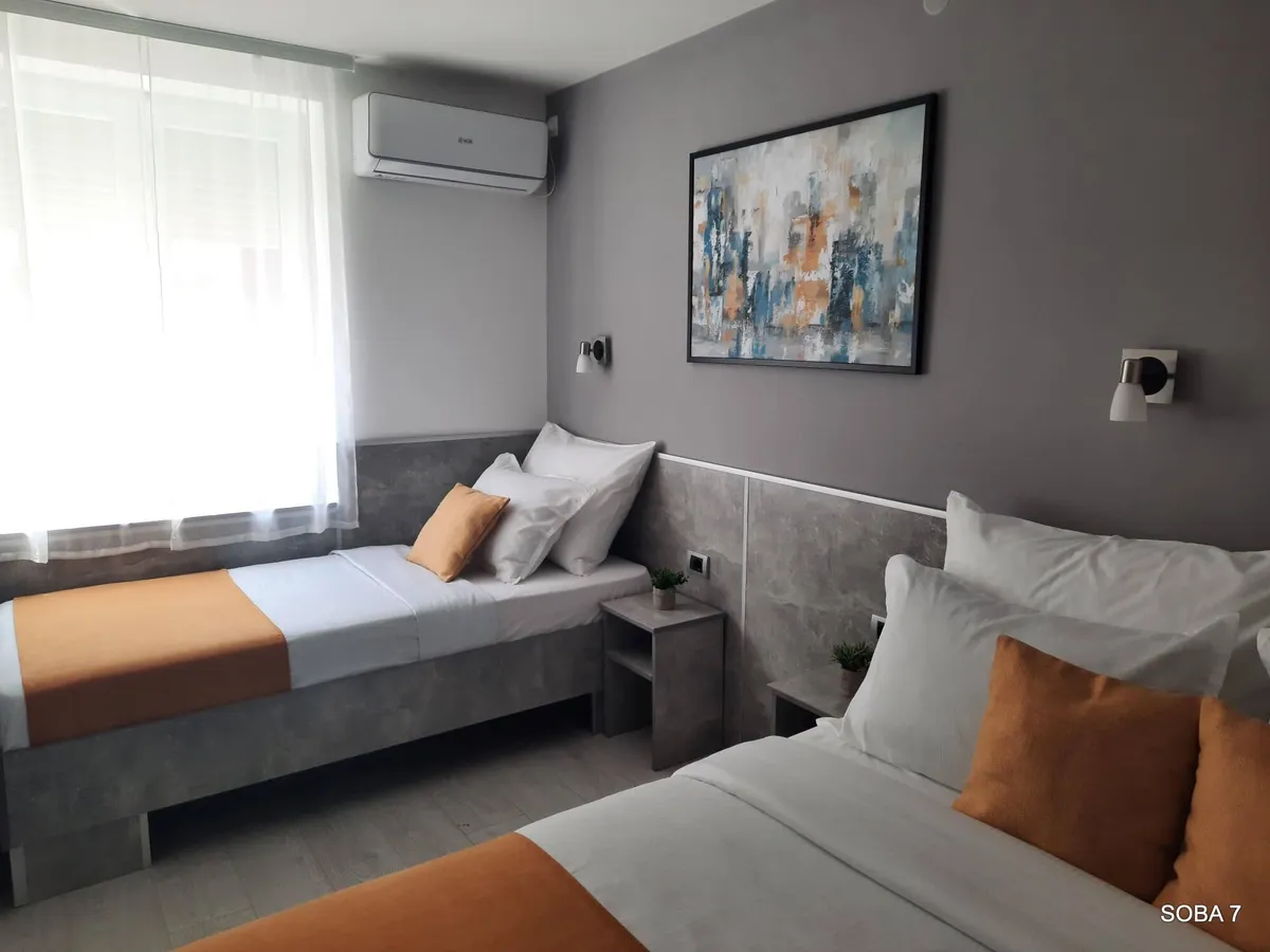 Smeštaj raspolaže sa jednokrevetnim, dvokrevetnim i trokrevetnim sobama uz mogućnost dodavanja pomoćnog ležaja u dvokrevetnim i trokrevetnim sobama.