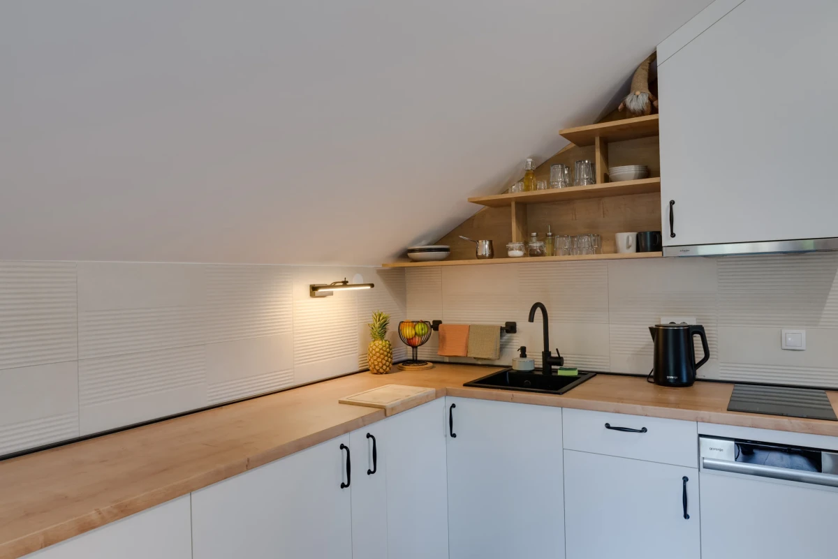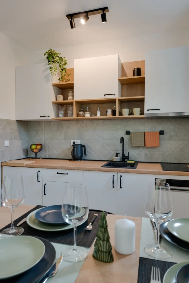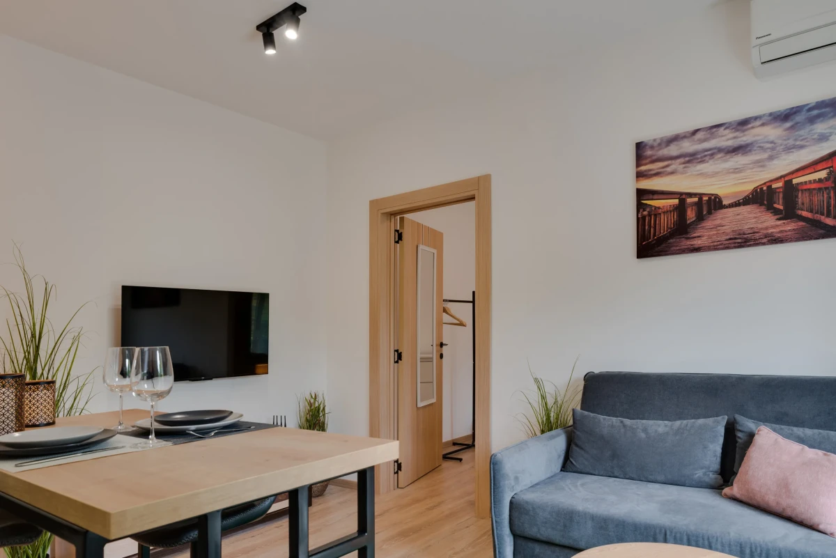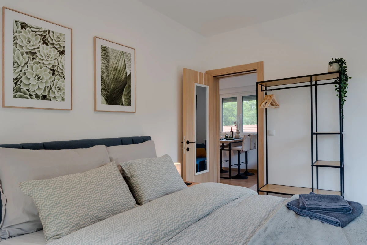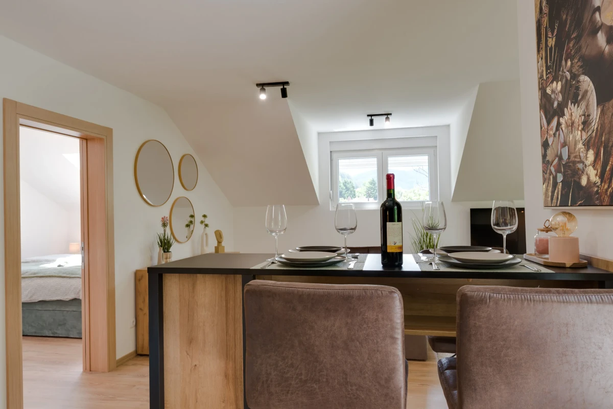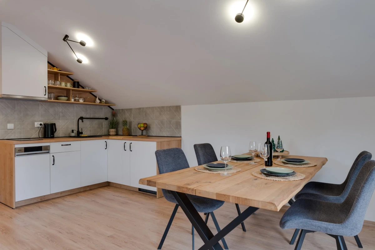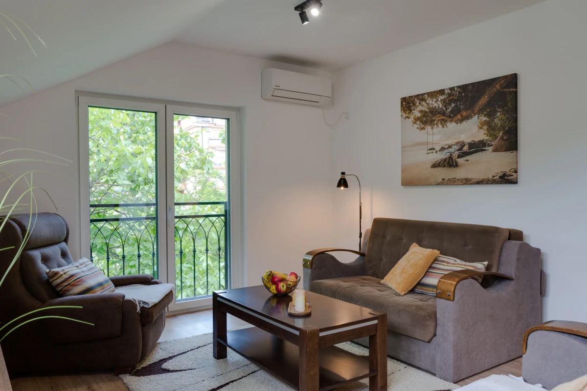 Svaki od apartmana nudi prelep pogled na planinu Goč kao i na samu Vrnjačku reku sa svojih prostranih terasa sa udobnim baštenakim nameštajem koji zadovoljava i najviše stamdarde ugoatiteljstva. Na 30 m od samog objekta se nalazi i početak staze za šetanje kroz borovu šumu koja odiše neverovatnom svežinom mladih četinara dok je na svega 100 m Japanski vrt i veliko dečije igralište. U blizini objekta postoji i veliki izbor restorana.