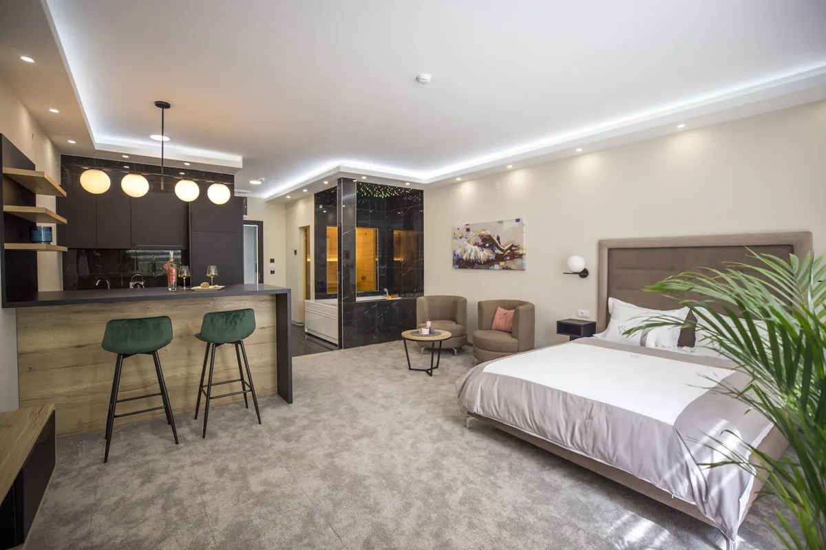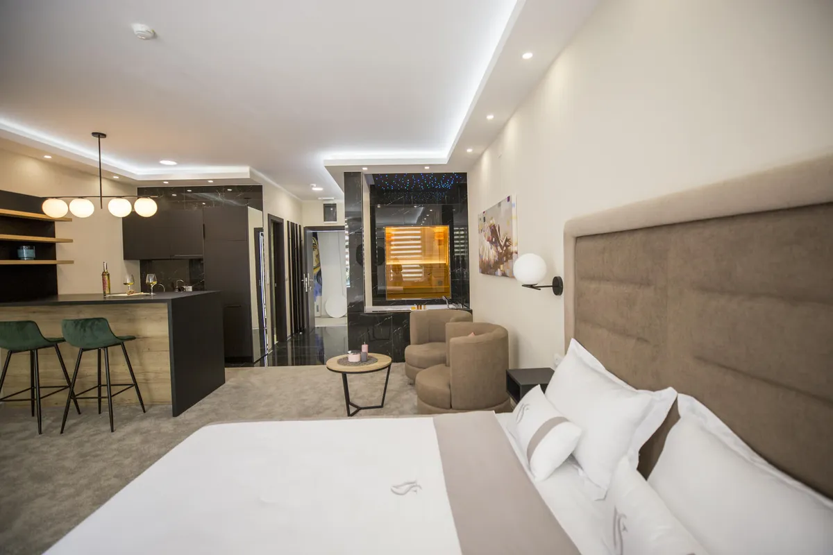 Svaki od pet luksuznih Wellness & Spa apartmana ima svoju jedinstvenost i poseban šarm a ono što čini ekskluzivnim u odnosu na sve druge je privatna spa zona koju poseduju čak tri apartmana.