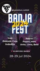 Od 28. do 29.jul 2024. održaće se Banja Fest kao i svih prethodnih godina na Olimpijskom bazenu. Ucesnici su Inas Đeksos, Coja Indođija, Petrov Popov,Heni Ante, Leni, Bebi.